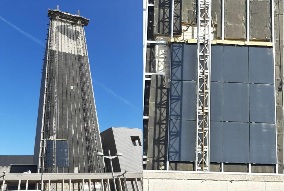 Les travaux de rénovation de la Cité Administrative à Liège entrent dans leur phase finale. Depuis quelques jours, cet imposant bâtiment se couvre de panneaux photovoltaïques et un sort tout particulier est réservé à la peinture murale de l'artiste Nicolas Kozakis. Ce projet a été confié à l’association momentanée Baumans-Deffet sprl Architecture et Urbanisme / Canevas sprl Architectes et Ingénieurs.
