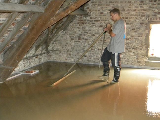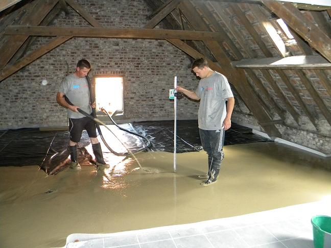 « La plupart des entreprises proposent une chape liquide sous la forme d'un mélange maison de sable et de composé", selon Calmix. “Cette façon de procéder donne un résultat inégal qui peut provoquer l'apparition d'une laitance. Chez Calmix, nous travaillons exclusivement avec de la chape liquide anhydrite de Knauf et une chape liquide rapide de Weber. Deux chapes de qualité qui en plus font gagner du temps, puisqu'il n'est pas nécessaire de les brosser. »