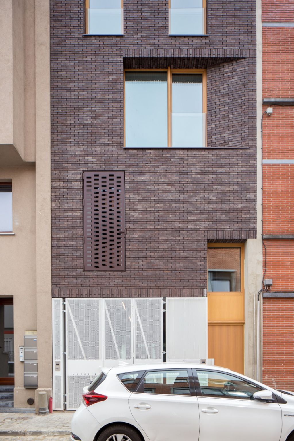 « Considérant la parcelle de petite taille devant accueillir la mixité de fonctions et toutes les entités nécessaires à chacun des 2 programmes, chaque pièce a fait l’objet d’une étude spécifique en matière d’accès à la lumière naturelle, de positionnement au sein de l’immeuble et d’ambiance intérieure », précisent les architectes. « Chaque matériau de façade utilisé renvoie spécifiquement à la fonction qu’il abrite. Tantôt totalement perméable à la vue, tantôt opérant un filtre nécessaire, tantôt opaque, chaque partie du projet parvient à se différencier tout en conservant l’aspect d’un volume unitaire et compact. » L’économie de moyens, la simplicité et l’authenticité des matériaux en présence parviennent ainsi à donner au bâtiment une identité propre mais néanmoins intégrée au quartier.