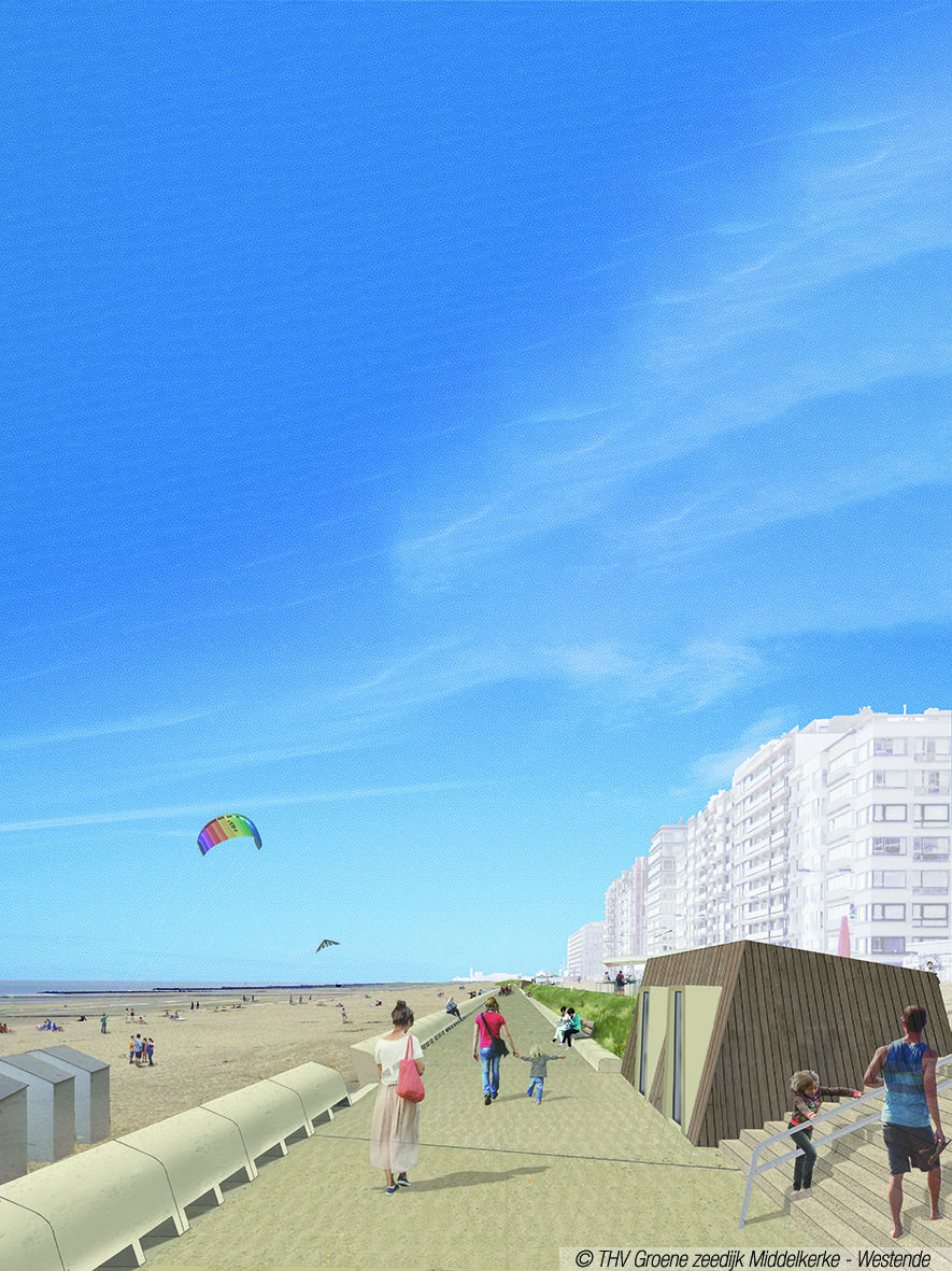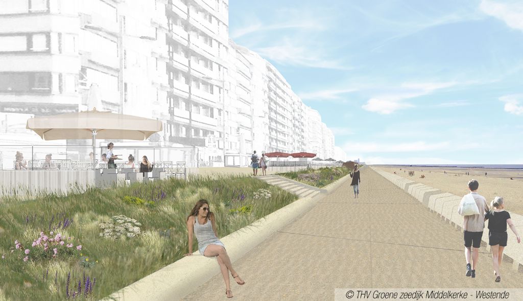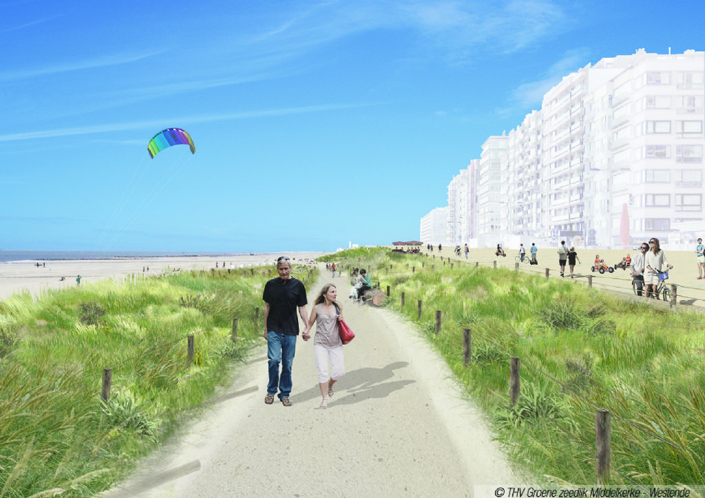 Le bureau MOPurbandesign a conçu la nouvelle digue entre Middelkerke et Westende en collaboration avec le Cluster Landscape, Plantec, SBE, Ecorem, Deltares et Aquabotanica. L'ancien front de mer a été complètement réorganisé afin d'offrir un espace plus large pour les promeneurs. L'infrastructure ainsi créée est également capable d'amortir les vagues dans les zones urbaines et propose, ce n'est pas commun, 100 000 m2 de végétation naturelle dans les zones résidentielles.