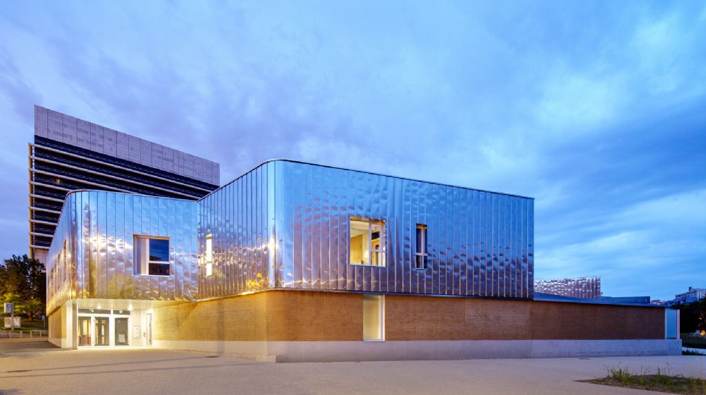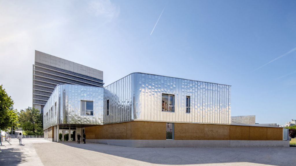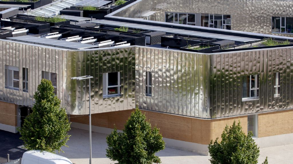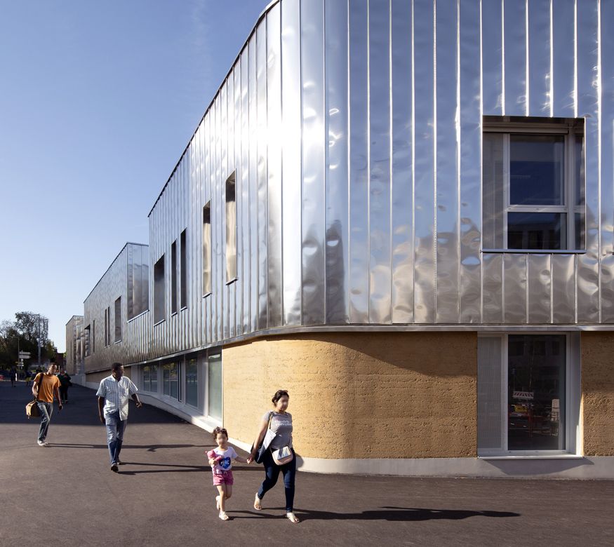 Structure porteuse faite de poteaux-poutres en béton, murs en terre crue (pisé), premier étage recouvert de feuilles d'inox bosselé, le Groupe Scolaire Myriam Makeba de Nanterre, conçu par le bureau TOA Architectes associés, sort de l'ordinaire. Il est rapidement devenu un vrai prototype, démontrant le possible recours à la terre crue en situation urbaine dense. Portrait d'une école architecturalement pas comme les autres, pour terminer en beauté ce mois de rentrée scolaire...