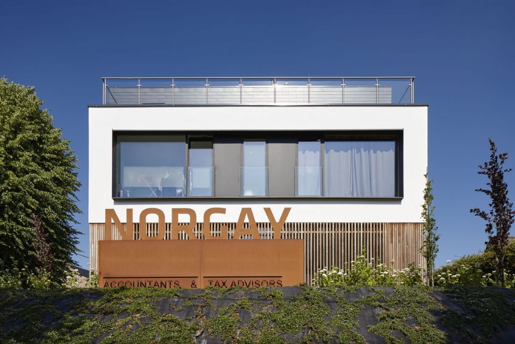 Les travailleurs de Norgay Accountants profitent toujours à l’heure actuelle du look empreint de fraîcheur et d’innovation du bâtiment. Grâce à son concept unique alliant enduit de façade blanc, bois et ardoise noire, la construction est devenue une véritable enseigne commerciale pour le cabinet d’expertise comptable. Elle ne laisse pas les clients, les visiteurs et même les candidats, indifférents. Le bâtiment est également loué plusieurs fois par mois par différentes associations et entreprises pour l’organisation d’événements et de réunions.