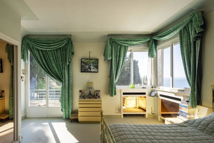 Avec ses 595 m² habitables répartis sur quatre niveaux, la villa s’intègre dans un jardin méditerranéen de 3.750 m². Pins parasols, cyprès et oliviers centenaires composent un écrin végétal qui renforce le dialogue entre architecture et paysage. Depuis 2001, le bien est protégé au titre des Monuments Historiques.