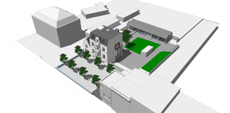 Le projet prévoit la rénovation de la bâtisse principale, de ses annexes et de la cour ainsi que la construction d’un logement familial pour le concierge. Le site, d’une superficie de 900 m2, est accessible en bus et en métro via la station Gare de l’Ouest située à moins d’1 km.