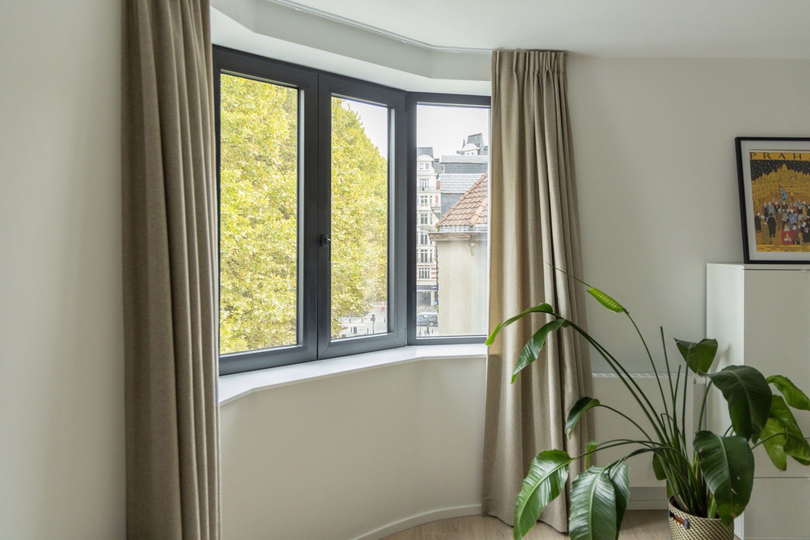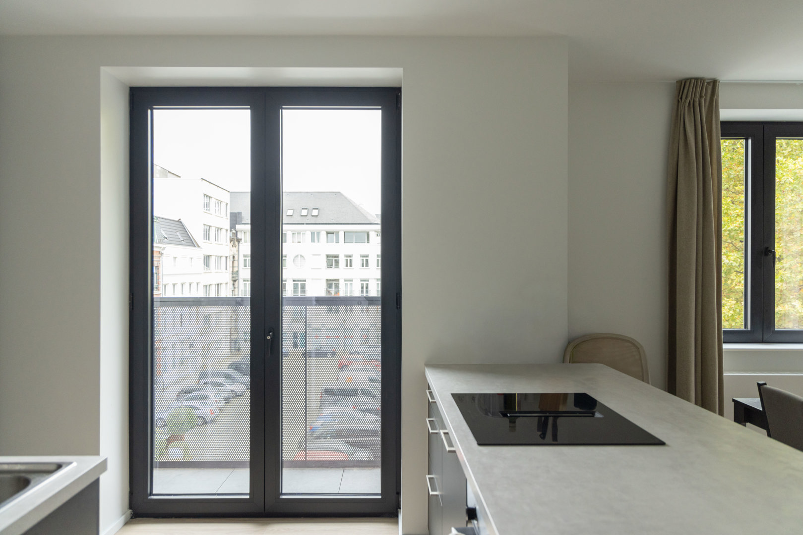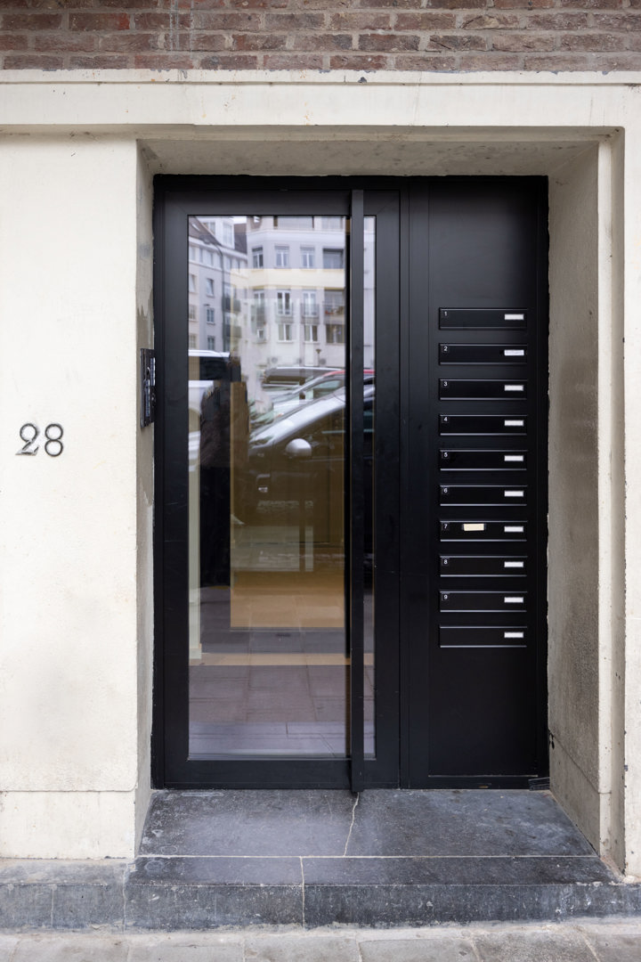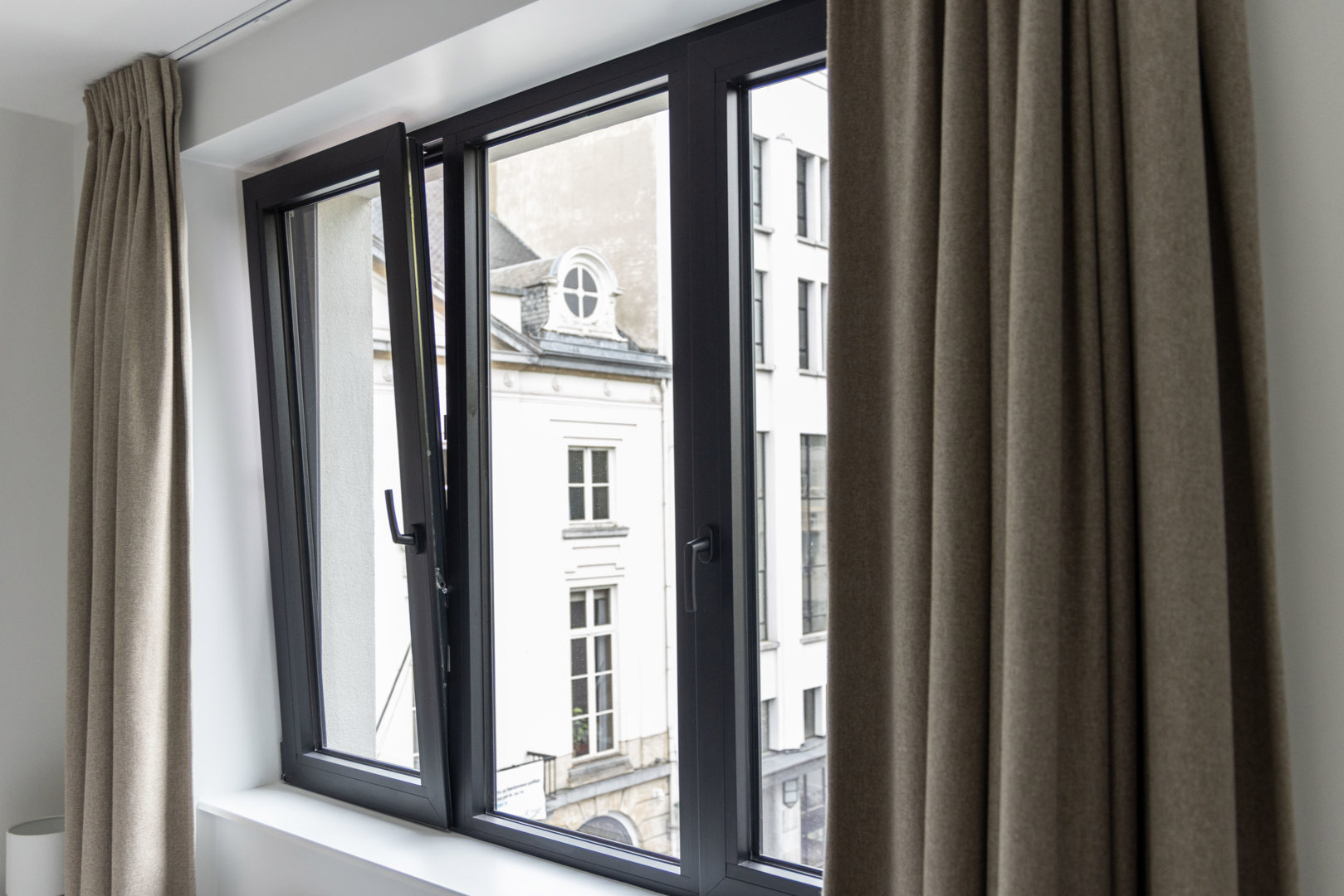 Une menuiserie extérieure moderne en PVC s’intègre dans le contexte urbain bruxellois