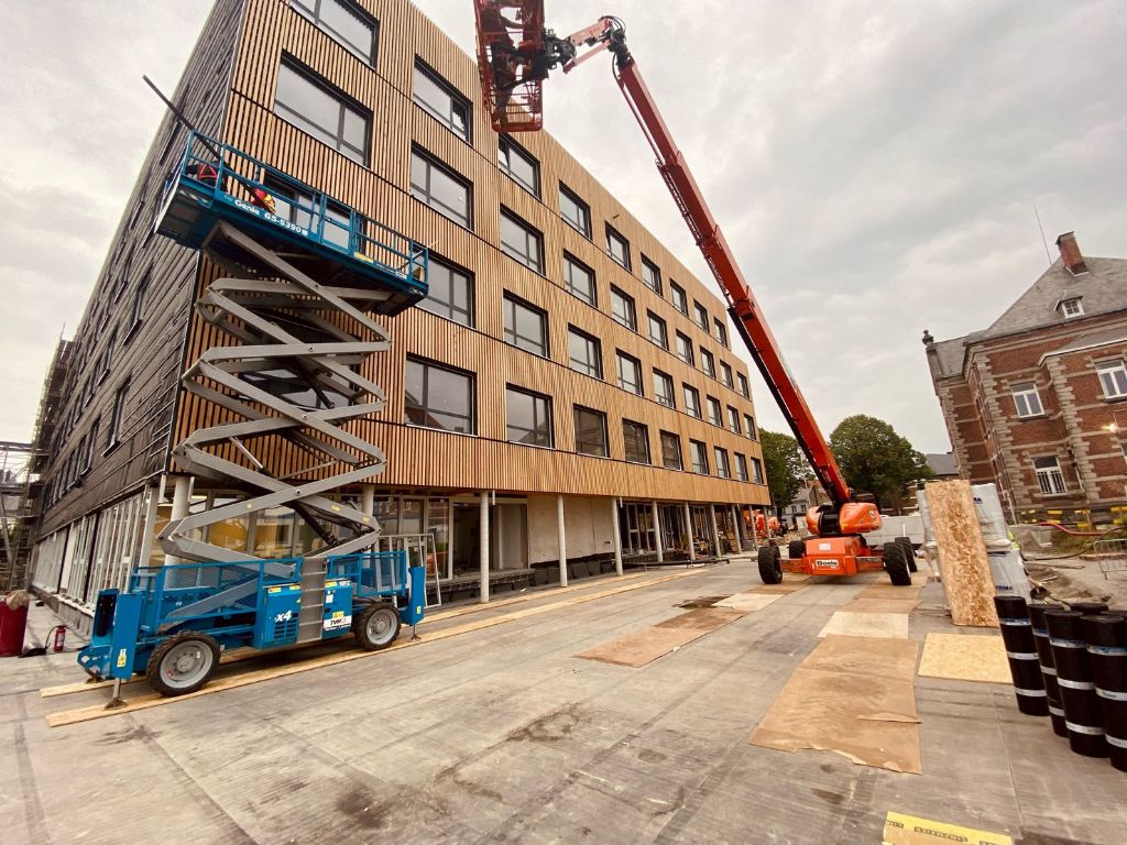 Non, nous ne sommes pas en Chine, mais en Wallonie picarde, à Tournai plus précisément. Mis en service ce 16 août 2021 le long du boulevard Lalaing, le bâtiment « 800 » du futur site unique du CHwapi est composé de 107 modules entièrement préfabriqués, acheminés d’Allemagne par bateau puis emboîtés avec précision les uns sur les autres comme des blocs Lego, au moyen d’une grue de 500 tonnes.