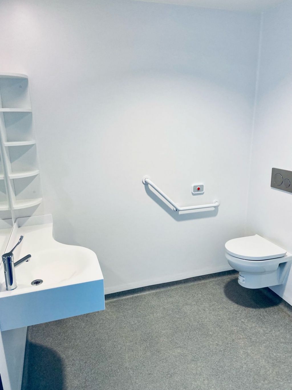 C’est une entreprise allemande basée près de Nuremberg et spécialisée dans le construction modulaire, Cadolto, qui a construit les modules de 30 tonnes chacun. Ceux-ci sont livrés entièrement équipés et déjà peints. Il n’y a plus qu’à les raccorder. La plupart se composent d’une chambre et d’un morceau de couloir, d’autres, plus petits, permettent de réaliser les circulations, les sanitaires et les bureaux. Une fois l’ensemble des blocs assemblés sur le socle en béton, un bardage bois a été posé. Comme une petite vidéo vaut mieux qu’une longue description, je vous renvoie au timelapse ci-contre. Bien entendu, le chantier a demandé une préparation longue et minutieuse pour garantir ensuite son déroulement fluide.