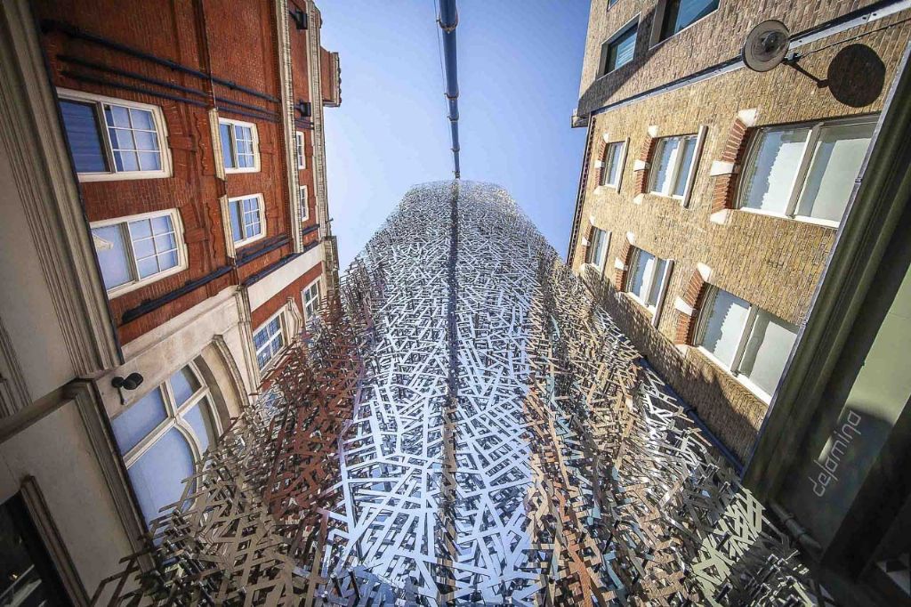 L'œuvre monumentale dépasse de la façade de la Clinic Schoen, située Wigmore Street à Londres. Ce bâtiment est une conception d'ESA Architects et ail a été construit par Format Engineers. La colonne en acier inoxydable a été réalisée sur base de cartes historiques du quartier de Marylebone, des cartes déconstruites afin de s'intégrer dans le contexte, le rythme et la structure de la façade.