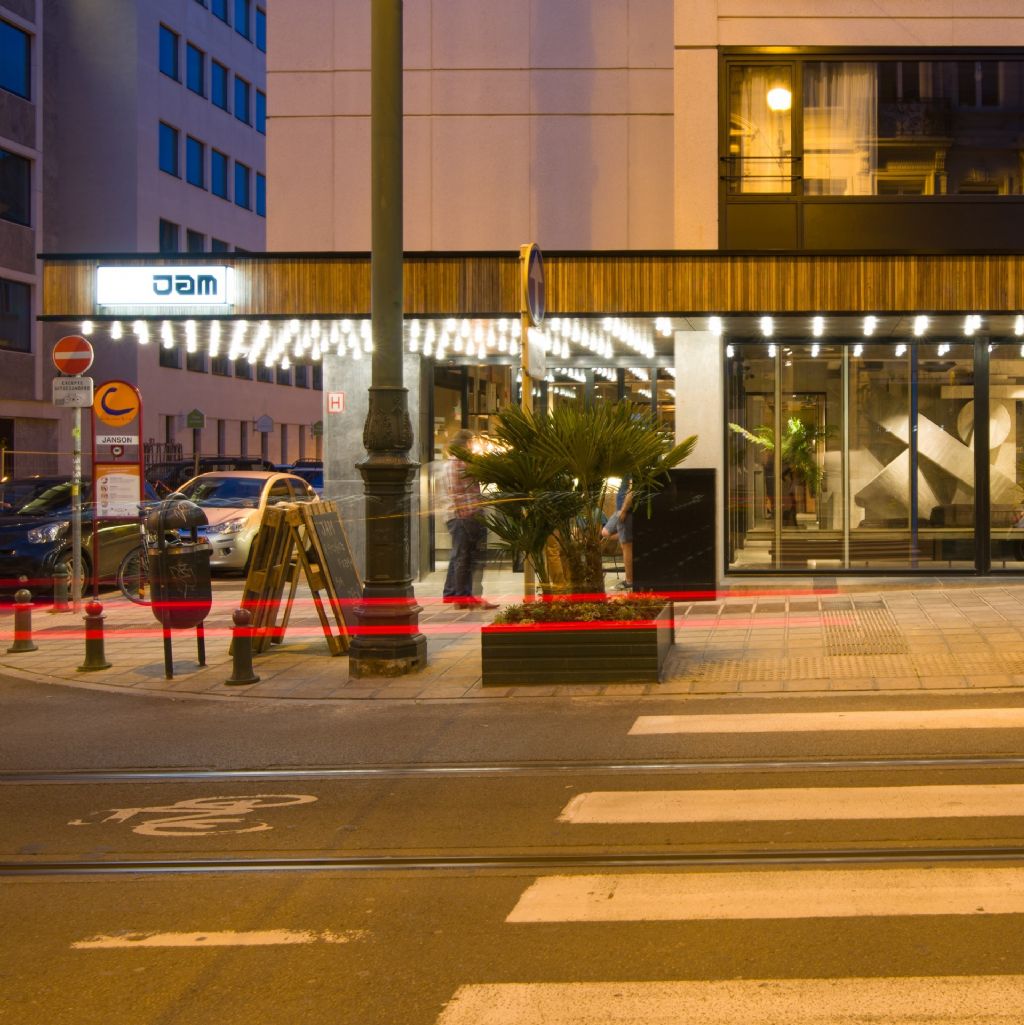 Le point d’attraction de l’hôtel JAM, situé chaussée de Charleroi entre Ixelles et Saint-Gilles, est la toiture multifonctionnelle. Afin de casser la monotonie des immeubles de bureaux en béton dans la rue, un jardin a été installé sur la toiture, comprenant un rooftop bar et une piscine ! Les plantations attirent l’attention de loin et font supposer qu’il y a plus à voir derrière la façade qu’à première vue.