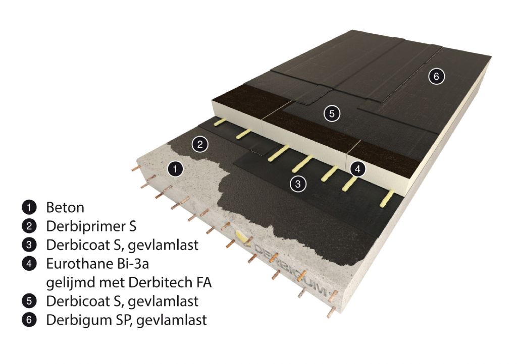 Pour le système d’étanchéité, Olivia est partie de la structure en béton existante. Cette dernière a été examinée et renforcée là où c’était nécessaire pour installer les bacs de plantations et la piscine. Pour le complexe de toiture, elle a opté pour un système classique : un pare-vapeur, une isolation, une sous-couche et une étanchéité finale. Le choix a été porté sur les membranes bitumineuses Derbicoat® S et Derbigum® SP, par soudage. Olivia raconte : « Mon équipe et moi, on dessine principalement une architecture contemporaine, avec beaucoup de toitures plates. Pour l’étanchéité, on choisit systématiquement les membranes Derbigum parce qu’elles sont fiables et très faciles à poser, c’est aussi vrai pour les détails et les finitions. Derbigum était la solution parfaite vu la charge importante que devait supporter la toiture ».