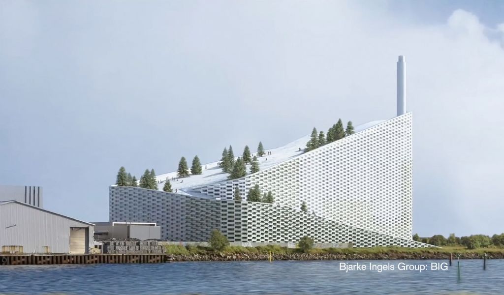 Aménager une piste de ski au-dessus d’un incinérateur était un vrai défi, certainement concernant la mise en œuvre. Et, bien que le bâtiment ne soit pas encore terminé, le Amager Resource Center fait déjà la une de tous les medias, attirant autant les architectes et les ingénieurs que les amateurs de ski. Le cabinet d'architecture BIG, responsable pour la conception de l'incinérateur, s’est inspiré d’une forme de cale pour la toiture du Centre de ressources Amager, permettant ainsi de concevoir de nouvelles possibilités de loisirs sur le parc récréatif d’Amager Bakke.
