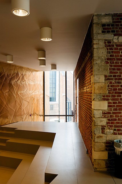 La création de relations visuelles, physiques et tactiles originales entre le nouveau bâtiment et les bâtiments existants s'est avérée cruciale. Pour les architectes Beeck & Hermans, « c'est comme si l'on créait trois circulations autonomes et claires, mais également aventureuses pour le public, les acteurs et l'administration à travers l'amalgame de bâtiments. En outre, nous avons réalisé un certain nombre d'espaces particuliers d'expérimentation et destinés aux utilisateurs, chacun ayant son propre caractère, son atmosphère et ses détails architecturaux. »