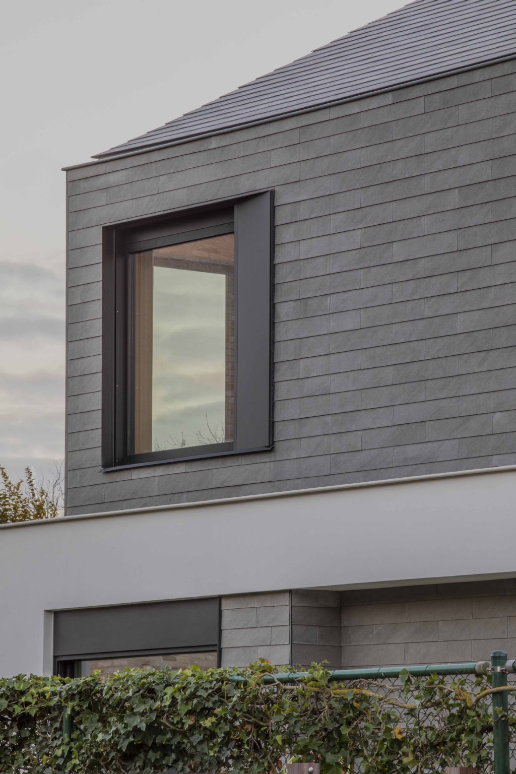 L'architecte Sarah Dewulf a rénové sa propre habitation avec les ardoises gris naturel Ardonit de SVK. Autant la toiture que la façade ont été entièrement rénovées, ce qui apporte un aspect moderne et intemporel à l'habitation.