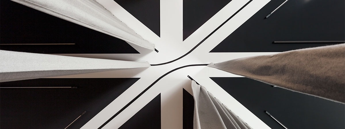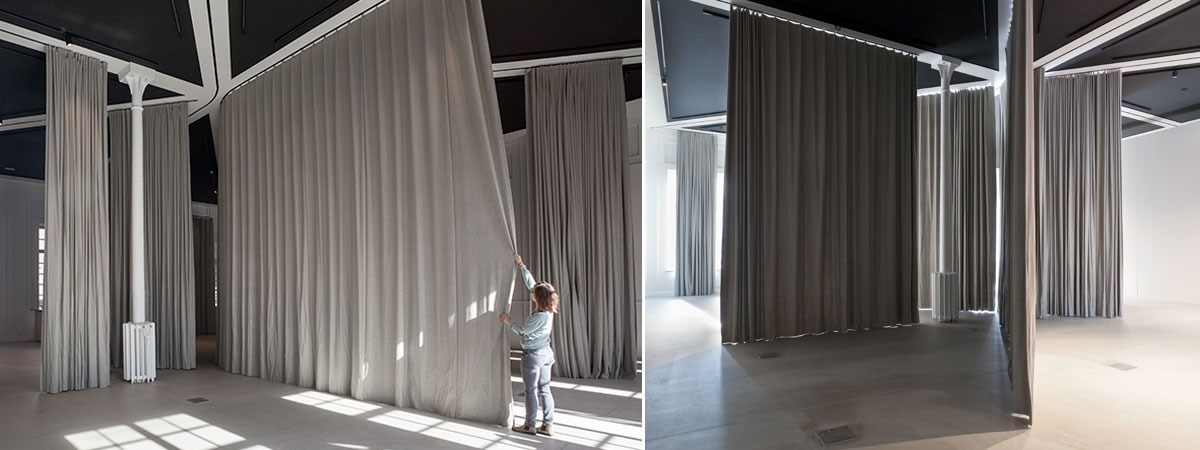 Plus de 110 m de patiences économiques ont été intégrées dans le plafond pour créer un système de suspension discret. Tous les rails ont été positionnés de manière à permettre différents agencements de la pièce, y compris les quatre courbes cintrées sur mesure. En fonction de l’événement, les 600 m courants de rideaux peuvent maintenant être positionnés de manière à diviser le site en plusieurs espaces plus petits ou à le conserver en une seule grande salle.