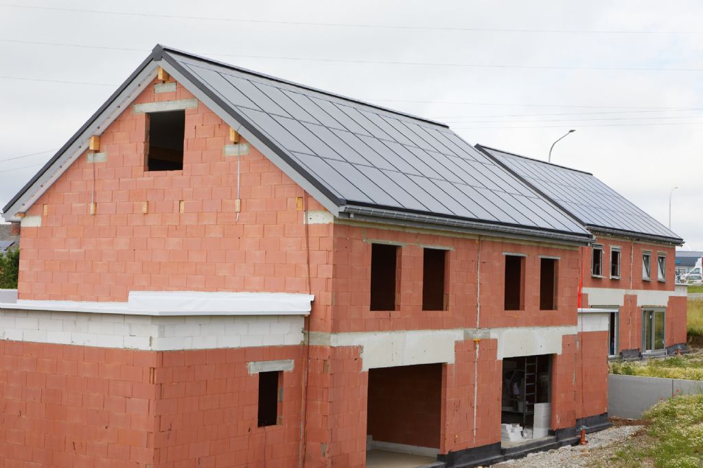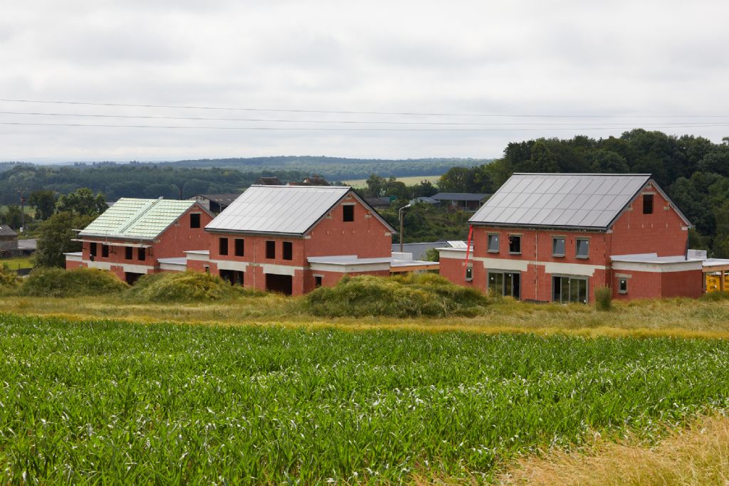 Une belle toiture, bien isolée et génératrice d'énergie à la fois; c'est ce qu'a réalisé l'entrepreneur pour la construction de 6 maisons contemporaines à Samart (Philippeville).