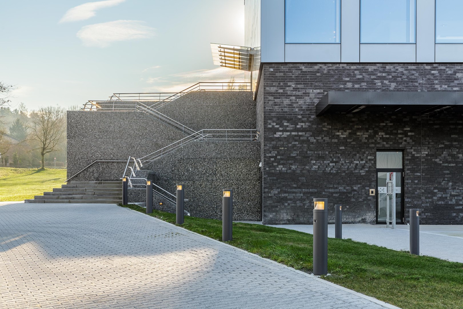Le projet Inflexio s'inscrit dans une stratégie globale de réduction de l'empreinte carbone et de consommation d'eau d'UCB. Depuis sa phase de conception en 2017 jusqu'à sa livraison, le projet a intégré des principes stricts de gestion des ressources naturelles, notamment en matière de gestion des eaux pluviales. Situé en bordure du Hain, une zone sujette aux inondations, le projet a été conçu en respectant le terrain naturel initial et en utilisant des techniques de rétention des eaux pluviales pour limiter l'imperméabilisation des surfaces.