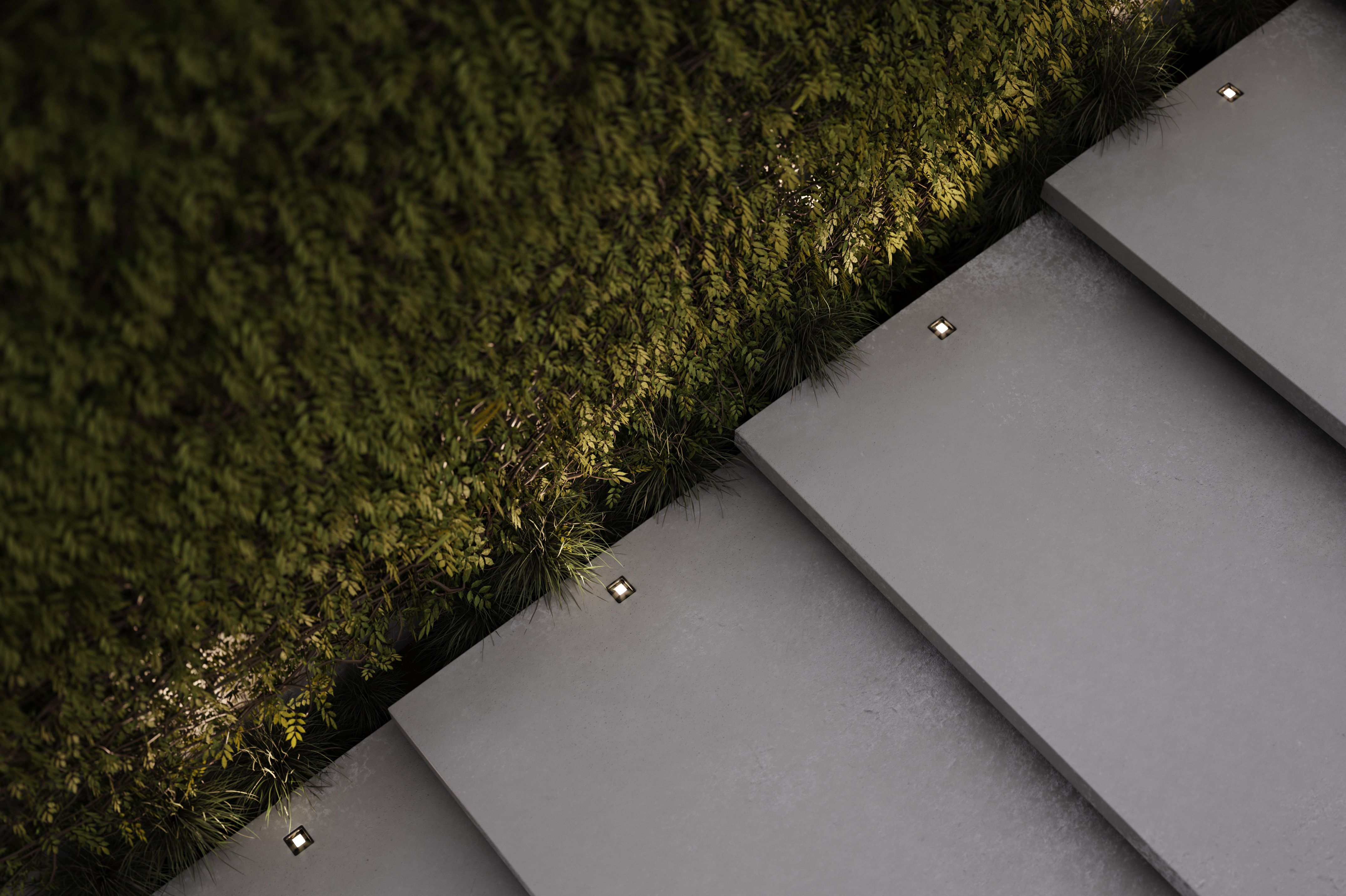 Le kreon up 40 est disponible en version carrée ou ronde, avec une couverture en verre trempé noir ou blanc. Le bord en acier inoxydable sablé (revêtement PVD naturel ou noir) apporte une touche raffinée. Les luminaires encastrés dans le sol ont parfois un effet éblouissant, mais dans le cas du kreon up 40, tout comme dans les autres luminaires kreon, les sources LED sont positionnées en retrait dans les luminaires et sont contrôlées par un choix de filtre anti-éblouissement pour un éclairage précis pour créer un éclairage vertical qui met le bâtiment en valeur. En plus des uplighters, la gamme kreon up 40 propose également des downlighters montables.