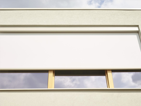 L'air intérieur sain, 24 h/24 et 7 j/7, se traduit, entre autres, par de meilleures nuits et un sommeil nocturne plus réparateur. En été, la protection solaire extérieure contribue également à un sommeil paisible. En effet, si les stores sont baissés le matin, il ne fait jamais trop chaud dans la chambre à coucher les jours d'été. La nuit, la toile de store occultante plonge la chambre à coucher dans l'obscurité totale et, en hiver, nous bénéficions toujours d'une lumière naturelle maximale dans la maison, avec les stores relevés. Je peux enfin faire la grasse matinée le week-end, même en été, sans me réveiller à cause de la lumière du jour. » Les toiles de store gris-beige sont assorties au reste des murs. Le caisson et les coulisses sont thermolaqués dans la même couleur que le plafonnage.
