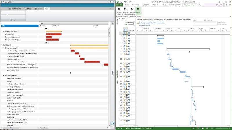 Actuellement un planning est souvent géré dans un logiciel séparé tel que MS Project ou Primavera P6. C’est pourquoi il est possible d’intégrer un planning à partir de tels systèmes. Il sera beaucoup plus facile d’adopter un planning complexe de cette manière.