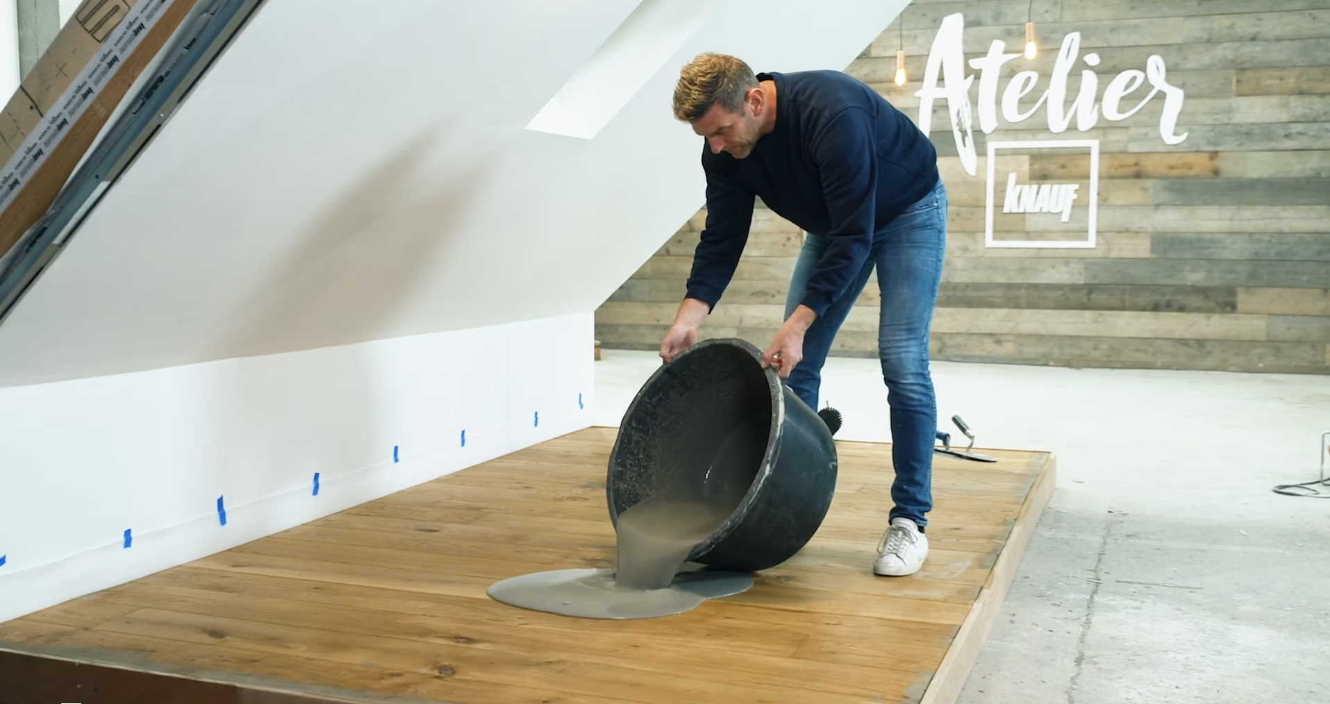 Atelier Knauf est une plateforme unique en son genre, qui aborde tous les aspects du gros œuvre et de la finition : de la toiture à la façade, des murs au plafond, sans oublier le sol. Un sol uniforme et stable est essentiel pour garantir une finition durable, qu’il s’agisse de parquet, de moquette, de carrelage ou de vinyle. Une base solide et plane permet d’éviter les problèmes à long terme. L’Égaline Universelle PLUS de Knauf a été conçue dans un souci de polyvalence, afin de pouvoir accueillir tout type de revêtement de sol.