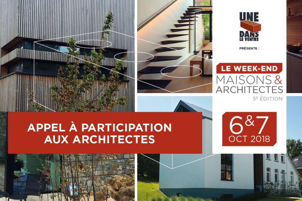 Pour la cinquième année consécutive, l’émission « Une Brique dans le Ventre », l’Ordre des Architectes et l’agence de marketing et communication « Expansion » se sont unis pour organiser le Week-end Maisons & Architectes 2018. C’est l’occasion de faire découvrir au grand public, le samedi et/ou le dimanche (selon votre choix), vos plus belles réalisations, qu’elles soient situées en Wallonie ou à Bruxelles. Pour participer, inscrivez-vous dès maintenant et remplissez vos fiches-projets d'ici le 15 juillet.