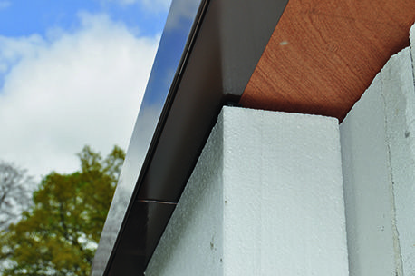 L'esthétique du profil de toiture a aussi retenu l'attention des concepteurs. Le panneau de bétonplex ou de bois est entièrement intégré. En haut comme en bas, le profilé de rive se raccorde parfaitement avec le panneau, grâce à quoi le crépi vient sans problème s’appliquer tout contre le profil de toiture.