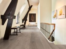 Sélectionner un sol de cette collection, c'est opter pour une atmosphère chaleureuse et un esthétisme imposant. Ces planches d'une longueur exceptionnelle ne mesurent pas moins de 2,10 mètres de long et 15 mm d'épaisseur. Les planches sont construites à partir de la technologie Soundcore pour un amortissement acoustique supplémentaire. Grâce à la couche d'usure extra épaisse de 0,8 mm, ces sols ont en outre une excellente résistance à l'usure et aux chocs.