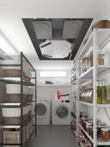 L'unité de ventilation plafonnière ComfoAir Flex est spécialement conçue pour les petites maisons et appartements, où l'espace disponible pose souvent problème. Une économie de place bienvenue donc, mais pas seulement : grâce à ses bouches flexibles, le temps lors de l'installation est lui aussi sensiblement réduit.