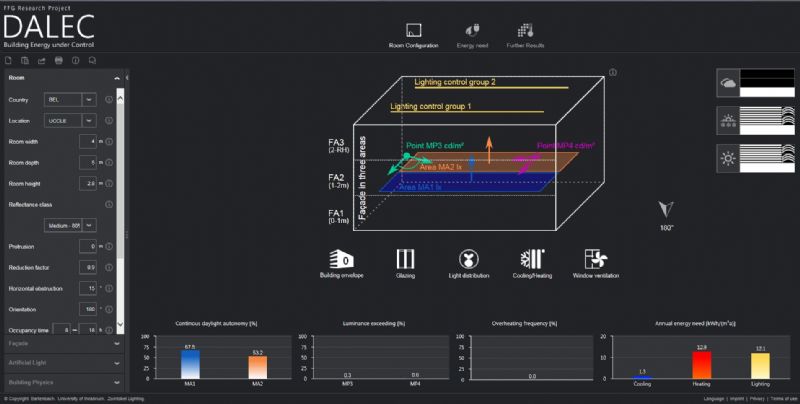 Un tel programme d'analyse de concept est actuellement en développement dans le cadre du projet de recherche DALEC (Day and Artificial Light with Energy Calculation), réalisé par Zumtobel en collaboration avec Bartenbach et l'université d'Innsbruck. Un prototype est déjà disponible.