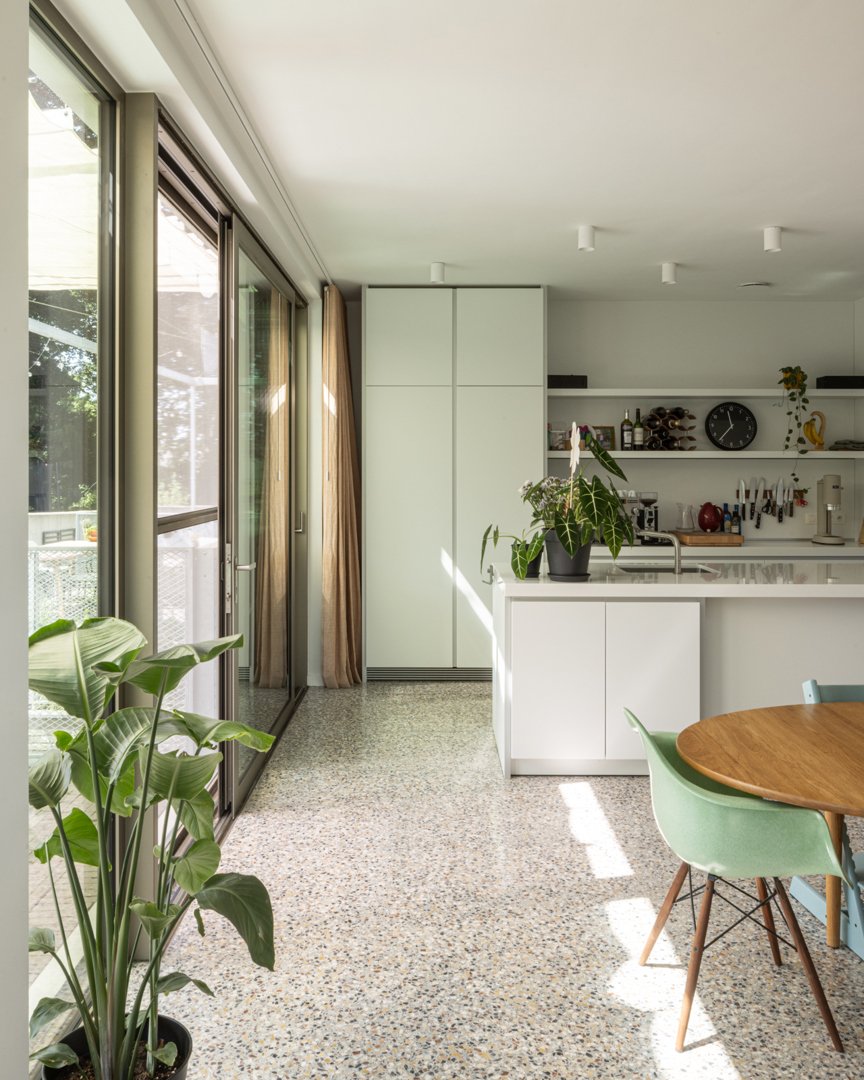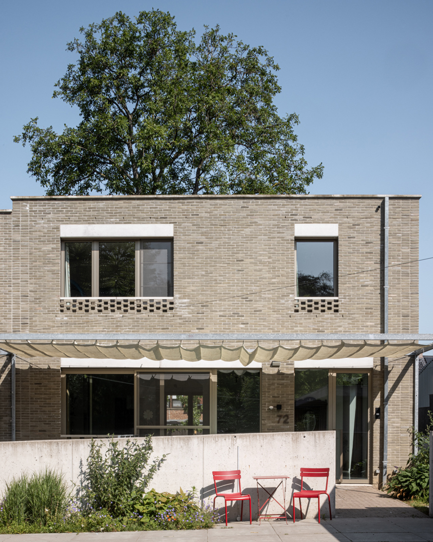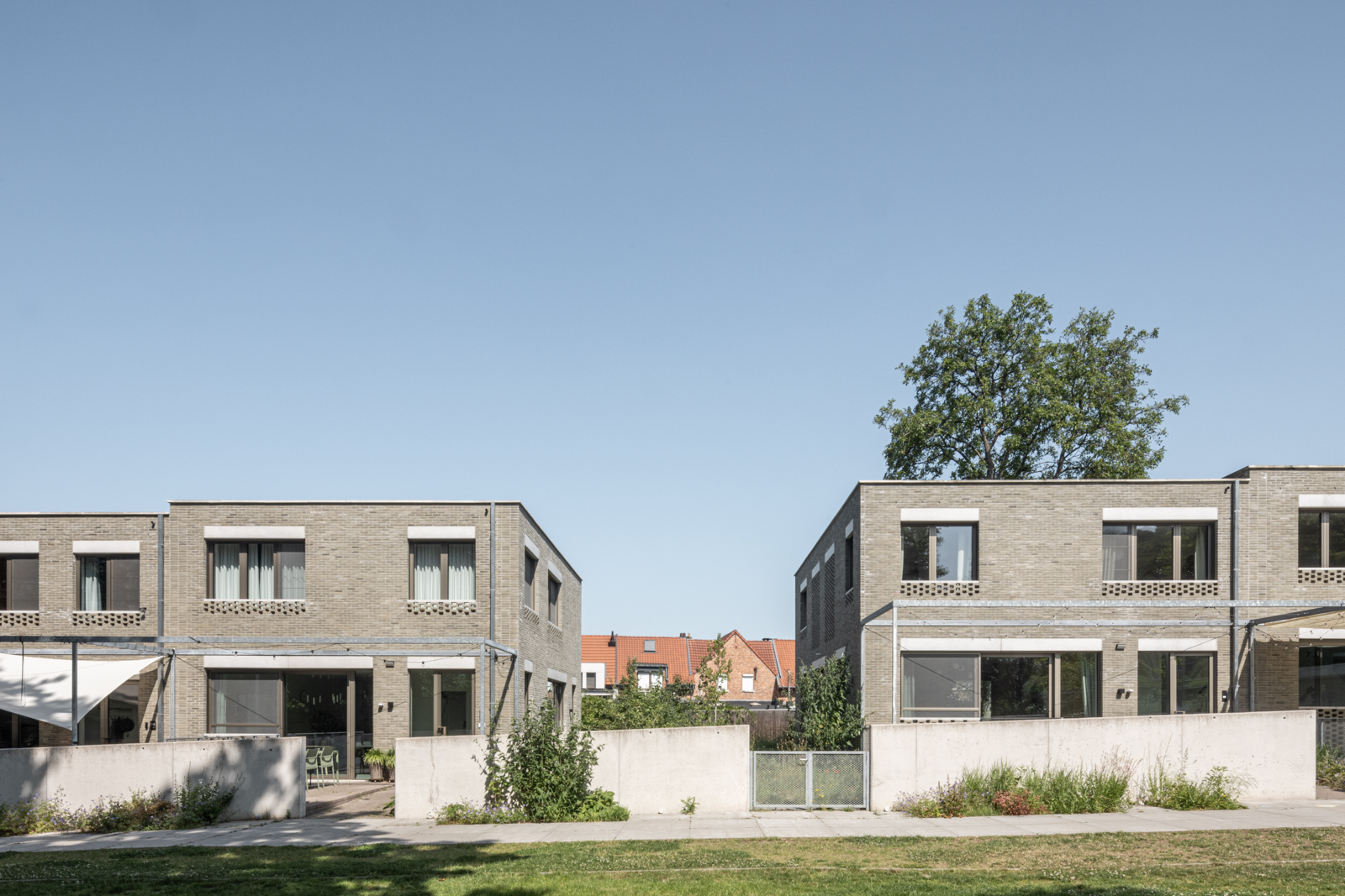 VEL est un projet d'habitat groupé pour cinq familles dans l'intérieur d'un grand îlot de construction à Kessel-Lo, Louvain. Une grande villa des années 1950 n'offrait pas la qualité suffisante pour être réutilisée et a fait place à cinq maisons unifamiliales dans deux volumes compacts, situées dans un paysage d'espaces extérieurs soigneusement différenciés : d'une aire de jeux verte commune, des terrasses ensoleillées privées, à la lisière silencieuse de la forêt à l'arrière. Le long de la frontière du site, une piste cyclable publique ancre le projet dans son environnement. Un chemin collectif orchestre la transition progressive du public au privé. La cohabitation exige que les intérêts communs et personnels aillent constamment de pair. Cinq maisons sur mesure, dans un ensemble cohérent.