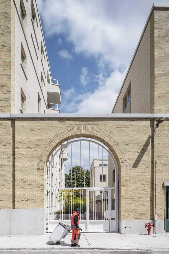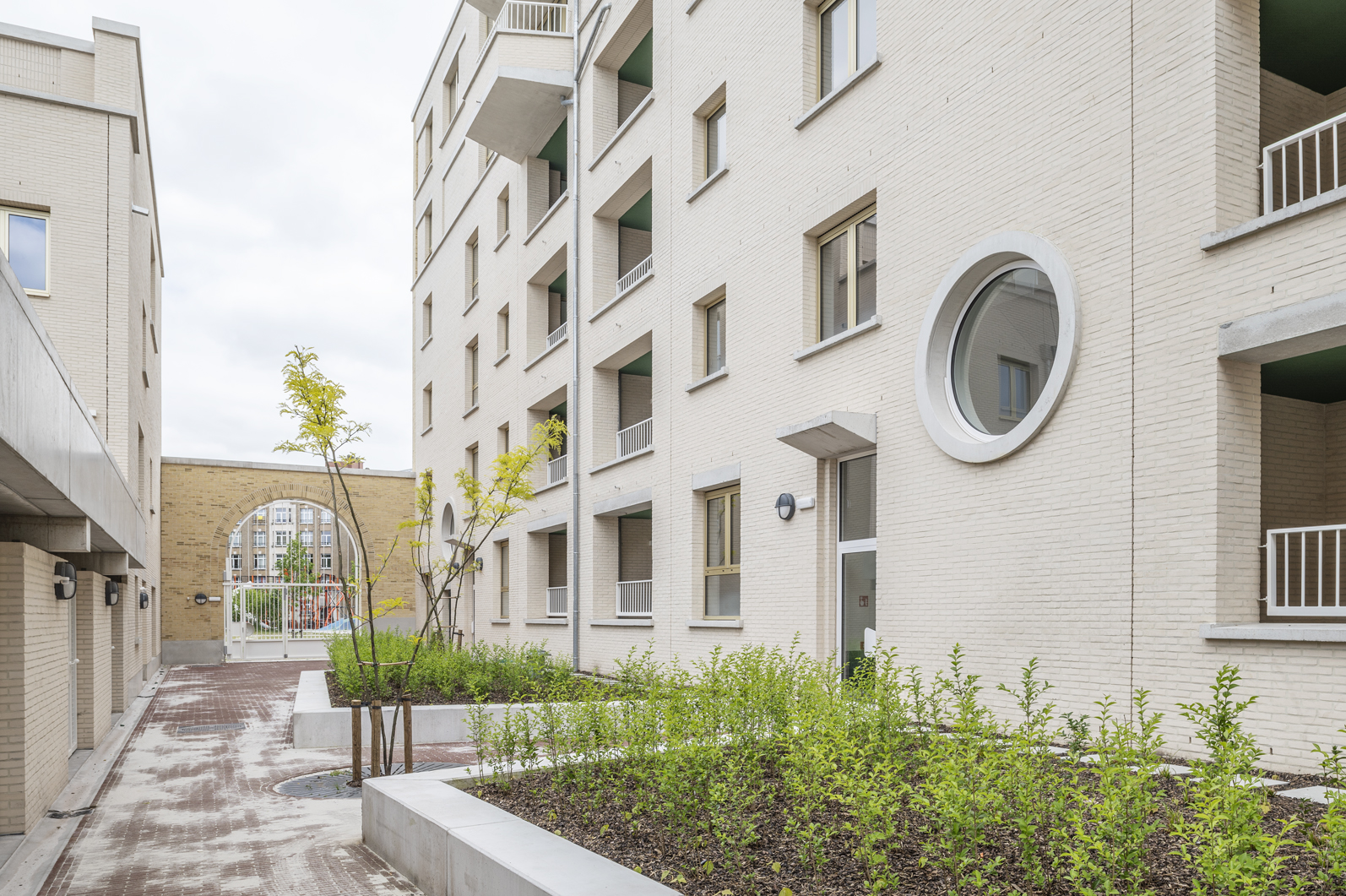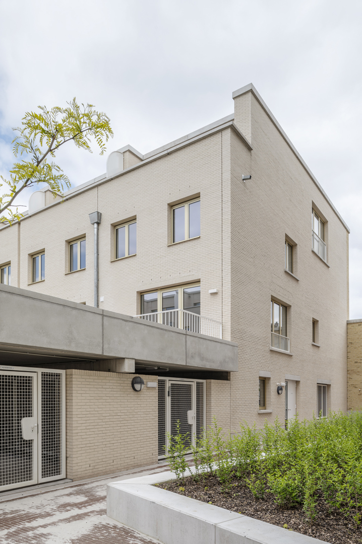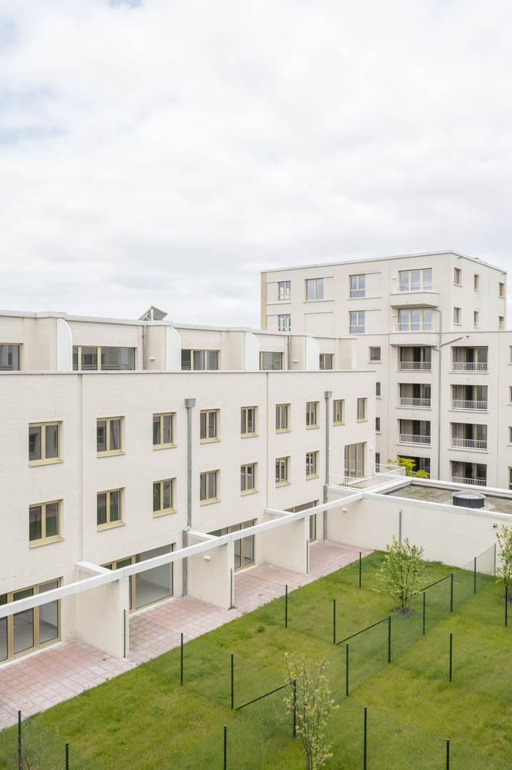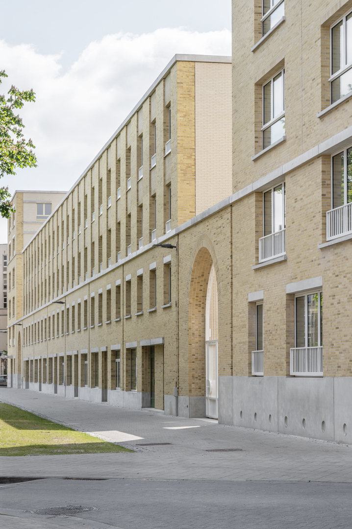 Dans un contexte urbain mouvementé, la conception d'un complexe de logements sociaux s'est centrée sur la dimension d'un bloc entier - la plus grande échelle possible pour l'architecture. En même temps, elle part de la plus petite unité, celle des résidents. Un bâtiment massif et précieux, basé sur le programme, sans trop de mélange de profils d'utilisateurs. Le logement à cette échelle exige une configuration efficace des ensembles résidentiels entre eux et en relation avec l'espace ouvert. C'est pourquoi une empathie rationnelle est d'autant plus importante dans cet exercice, traduit spatialement comme « de grands bâtiments avec de petits moments ». Dans l'articulation, le détail et la matérialité de la construction, l'ensemble plus vaste redevient domestique, tactile et sensoriel. Reconnaissable, centré sur l'humain et à la mesure de l'individu.