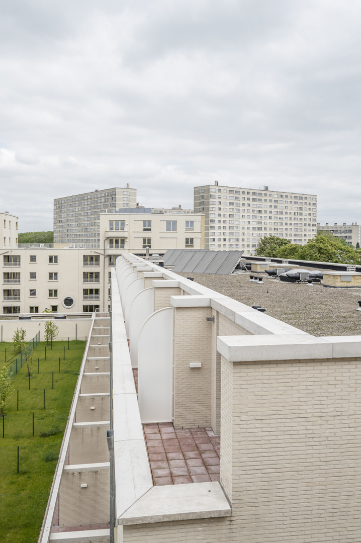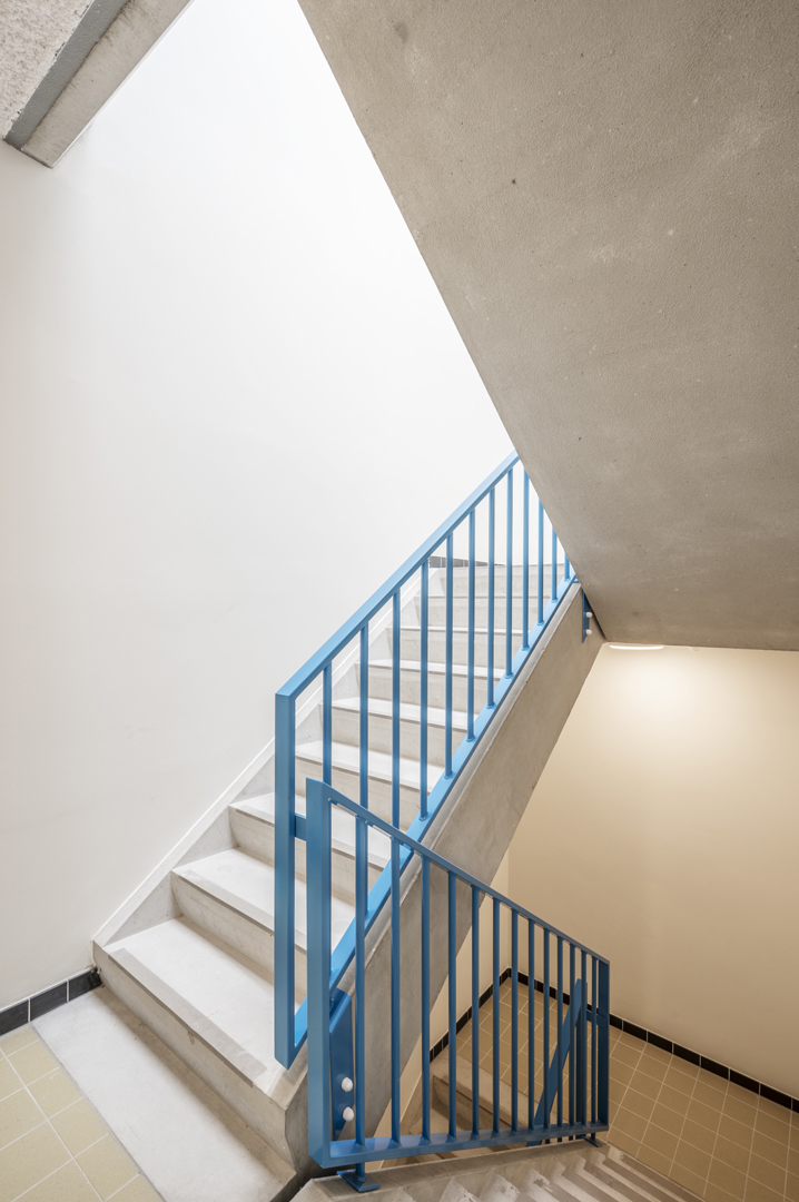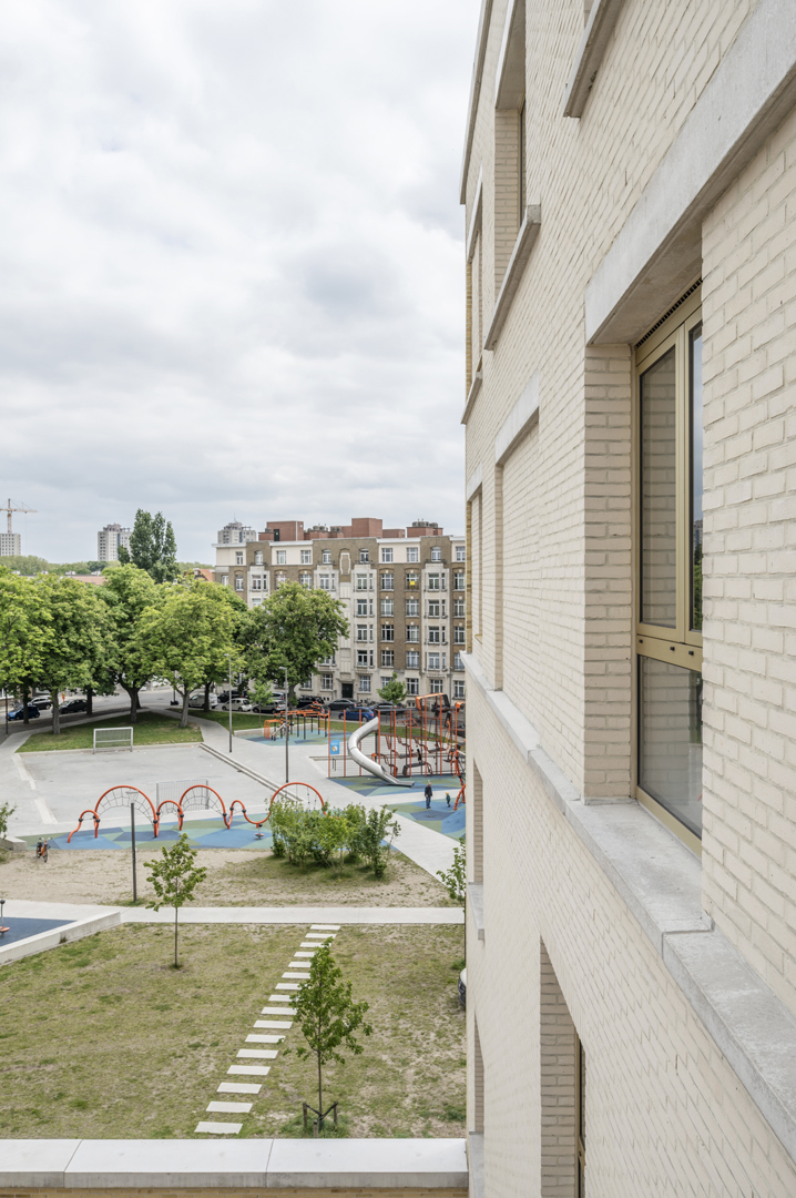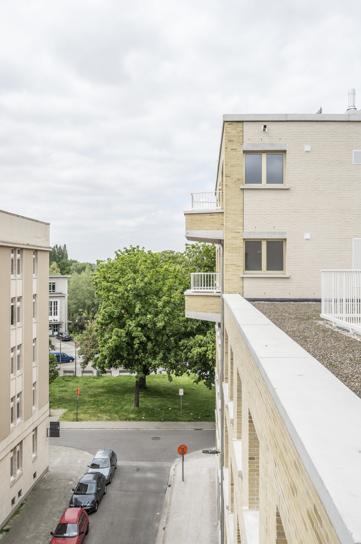 La structure rationnelle et la méthode de construction solide visent une longue durée de vie. Un bâtiment réaliste et résilient, lumière du jour, meublabilité, excès, plan clair, techniques collectives éprouvées qui peuvent être ajustées à terme, grands parkings pour vélos, belles entrées et un mélange de typologies généreuses, ... ne semblent peut-être pas être les thèmes les plus imaginatifs, mais ils constituent la base d'un bâtiment véritablement précieux qui pourrait avoir plusieurs vies et qui espérons-le, échappe au greenwashing ou à l'obligation d'être démantelé à tout prix. Ce bloc de construction apparemment rigide offre beaucoup plus aux résidents et aux passants qu'il n'y paraît à première vue. Tant les relations dans l'espace intérieur que celles avec le domaine public partent d'un engagement soutenu avec la ville.