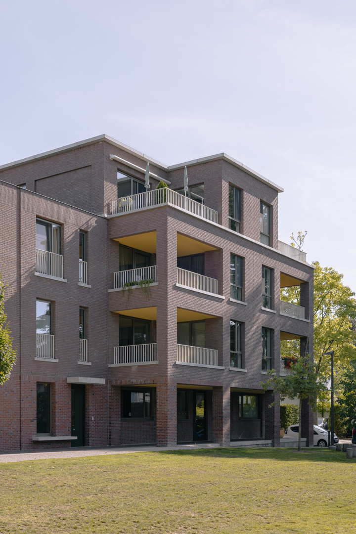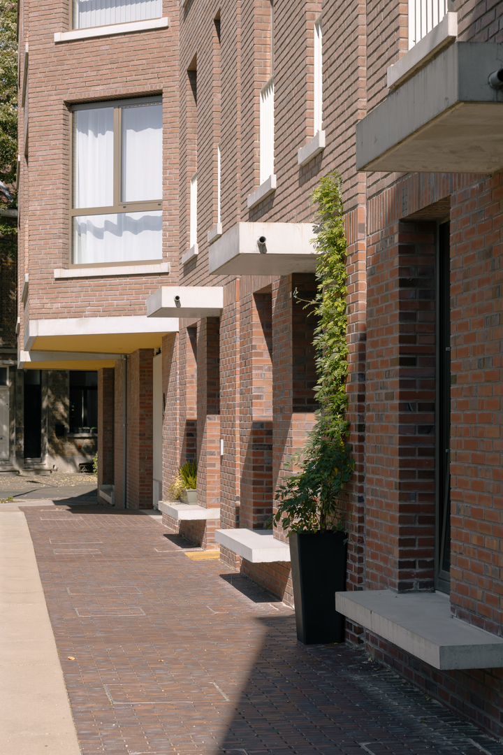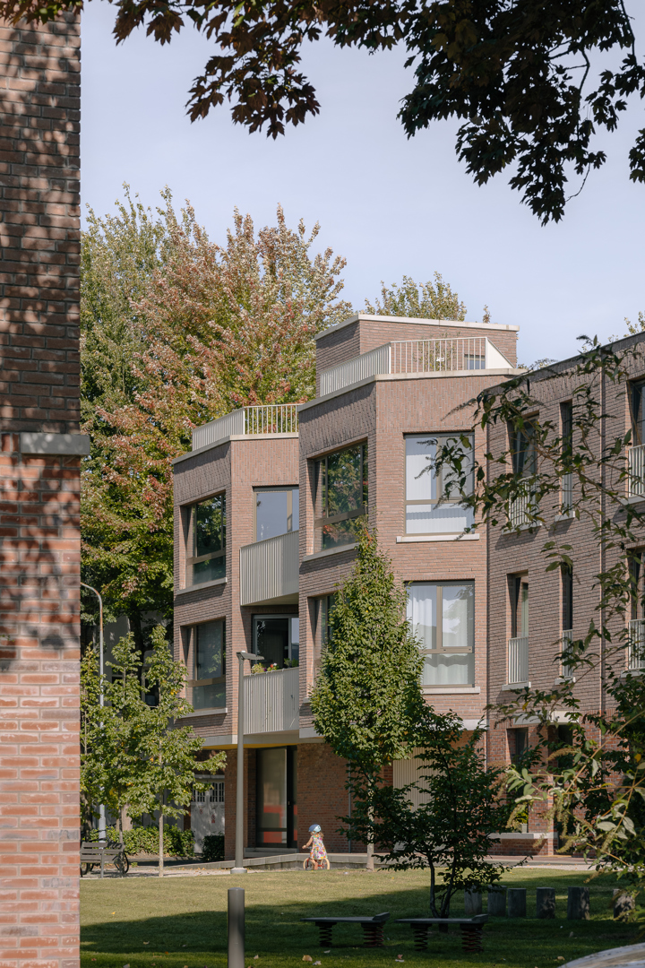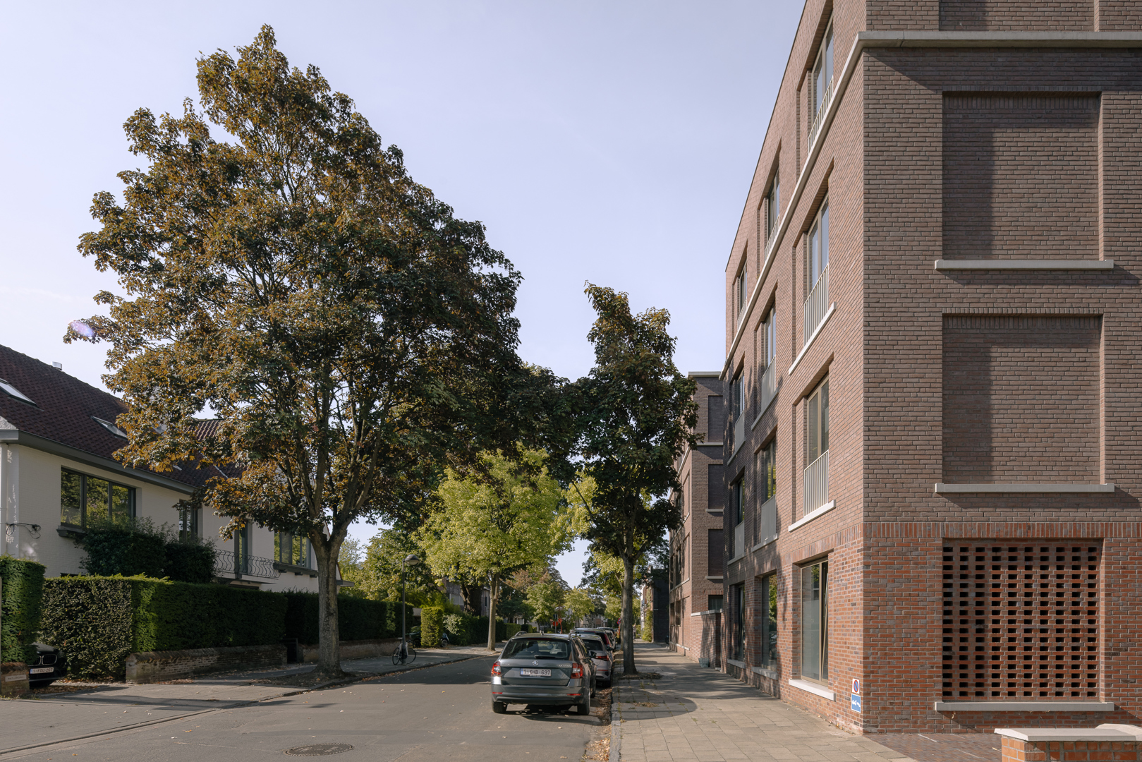 Ville dans la ville. Le potentiel de croissance à Mortsel est souvent caché dans de grandes « chambres extérieures » - derrière les rubans de petites maisons mitoyennes ou de villas. Dans le noyau des blocs de construction, un certain danger réside dans la croissance : les sauts d'échelle provoquent divers conflits entre privé et public, créant une sorte de Ville dans la Ville. L'implantation des nouveaux volumes dans le Perenpit restaure le tissu fragmenté, qui oscille en termes de texture entre la villa cottage et l'immeuble d'appartements, et reforme une frontière claire entre public et privé. Les bâtiments se tiennent ensemble comme une famille cohérente et s'intègrent doucement à l'échelle du quartier. Le petit parc est destiné au quartier et le jardin aux résidents. Les espaces extérieurs verts sont subtilement connectés et contribuent chacun à un agréable climat de vie.