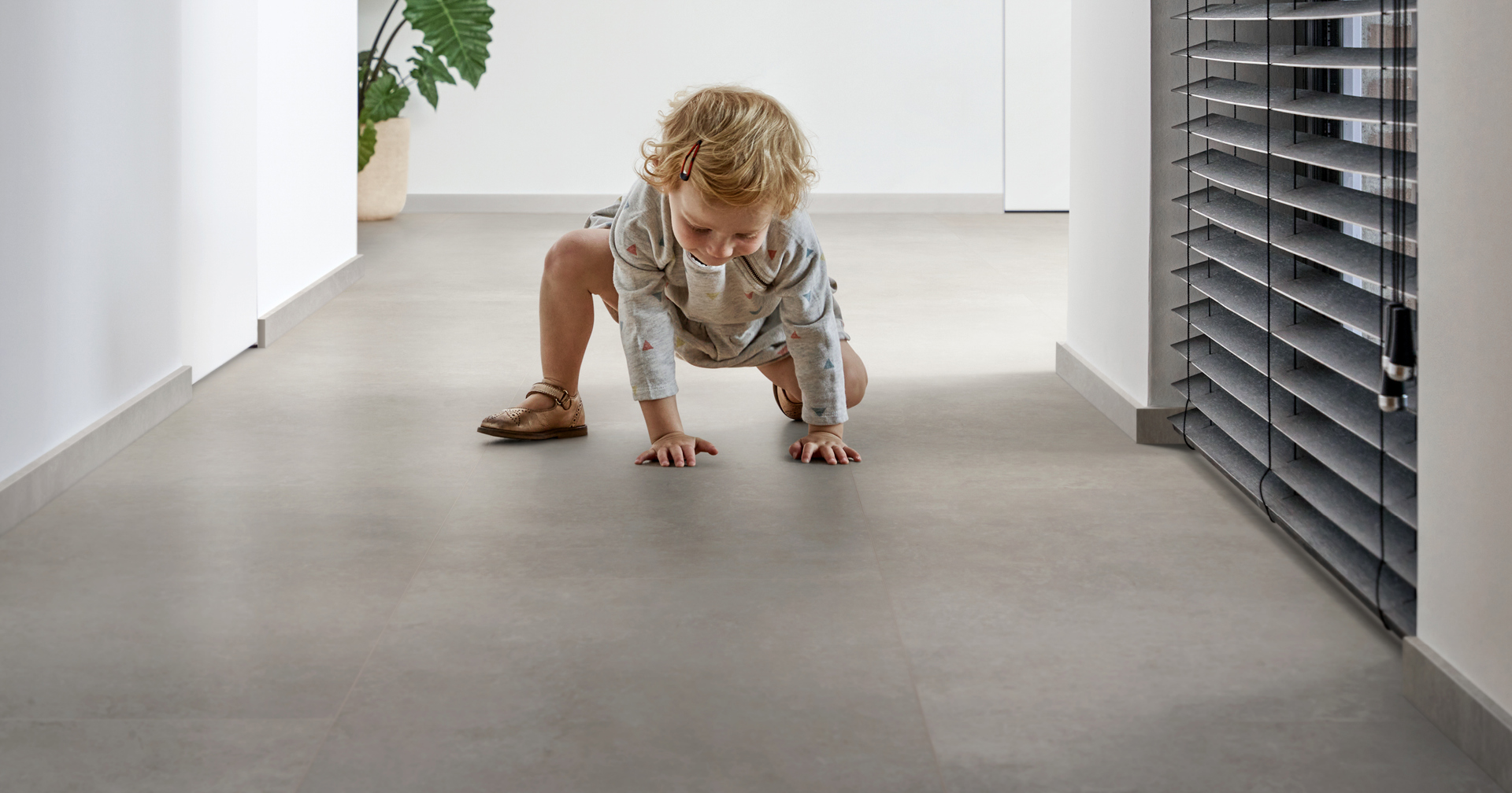 Des motifs exclusifs en bois ou en dalles offrent au concepteur ou au maître d’ouvrage d’innombrables possibilités, permettant au sol de s’intégrer parfaitement dans tout type d’intérieur. Le système de clic intégré, sans colle, garantit une installation flottante simple et rapide. La sous-couche en liège integrée rend toute sous-couche supplémentaire superflue et compense les petites irrégularités du support. Un sol Coretec® peut ainsi être posé directement sur un support en bois, en béton ou sur des dalles. Le liège assure également un confort de marche supérieur, rendant le sol plus chaud et plus silencieux.