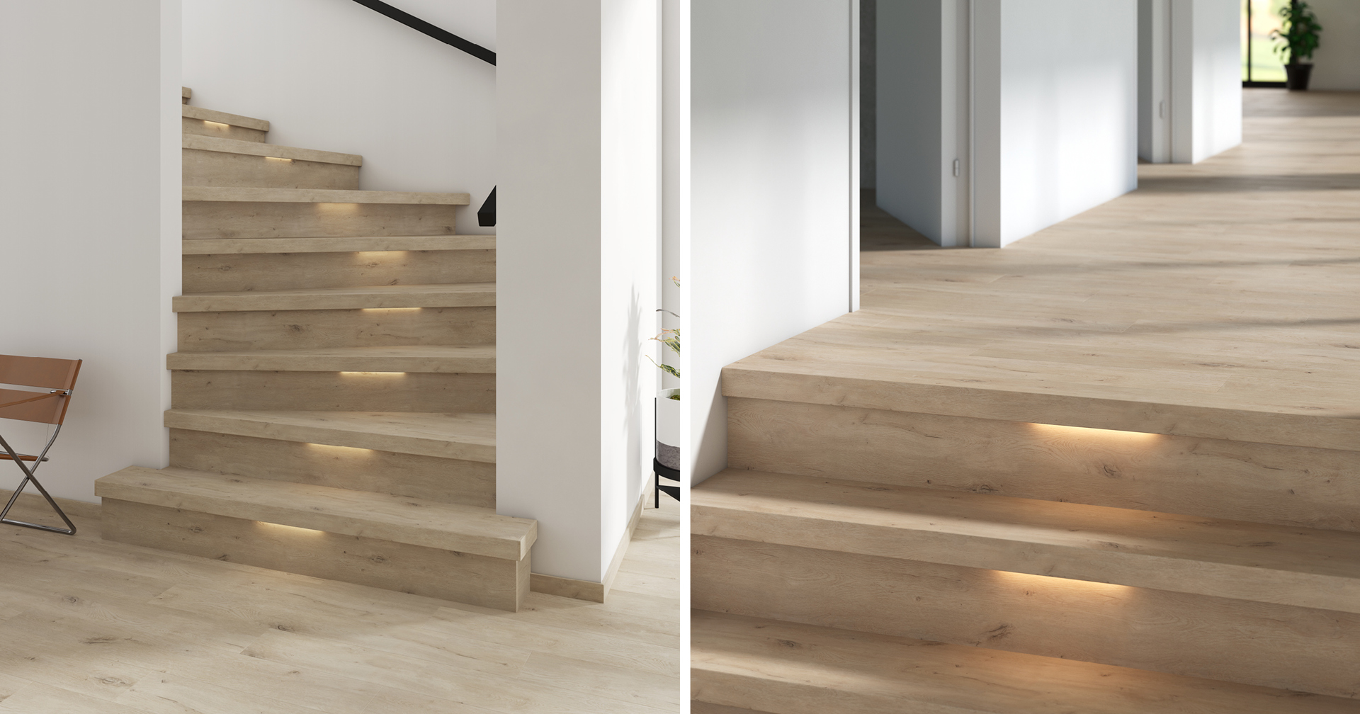 Il est également possible de rénover votre escalier avec Coretec® Stairs. Vous profitez ainsi des mêmes avantages que pour vos sols Coretec®, tout en créant une harmonie parfaite dans votre intérieur.