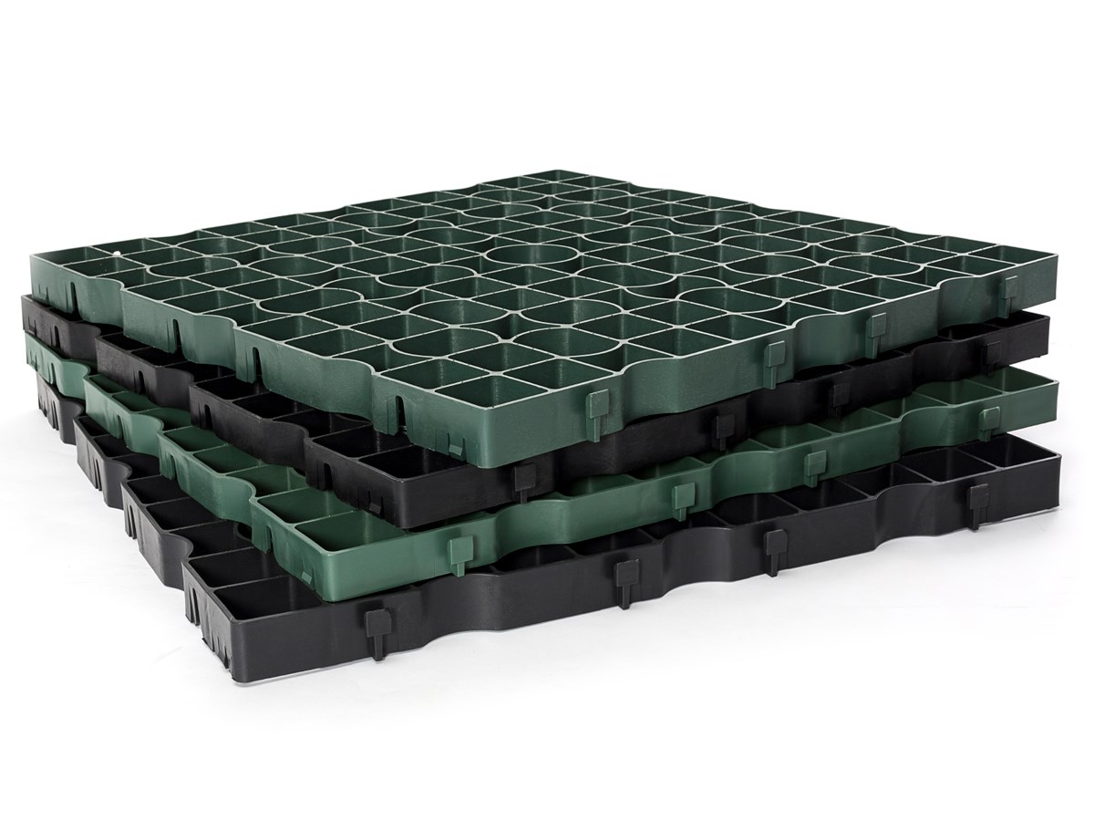 Les dalles de gazon ECCOdal sont conçues dans une optique de circularité et de durabilité. Elles sont entièrement fabriquées à partir de matériaux 100 % recyclés, notamment un mélange de polyéthylène (PE) et de polypropylène (PP). Cela signifie que seuls des plastiques recyclés sont utilisés dans la production, ce qui contribue à réduire les déchets et à promouvoir une économie circulaire. En outre, les dalles de gazon elles-mêmes sont également recyclables à 100 %. À la fin de leur vie utile, elles peuvent être retraitées pour fabriquer de nouveaux produits, ce qui permet de boucler le cycle des matériaux et de réduire les besoins en nouvelles matières premières. En outre, les dalles de gazon ECCOdal sont entièrement produites en Belgique. Ce processus de production locale minimise les distances de transport, ce qui se traduit par une réduction des émissions de CO₂ et de l'empreinte écologique.