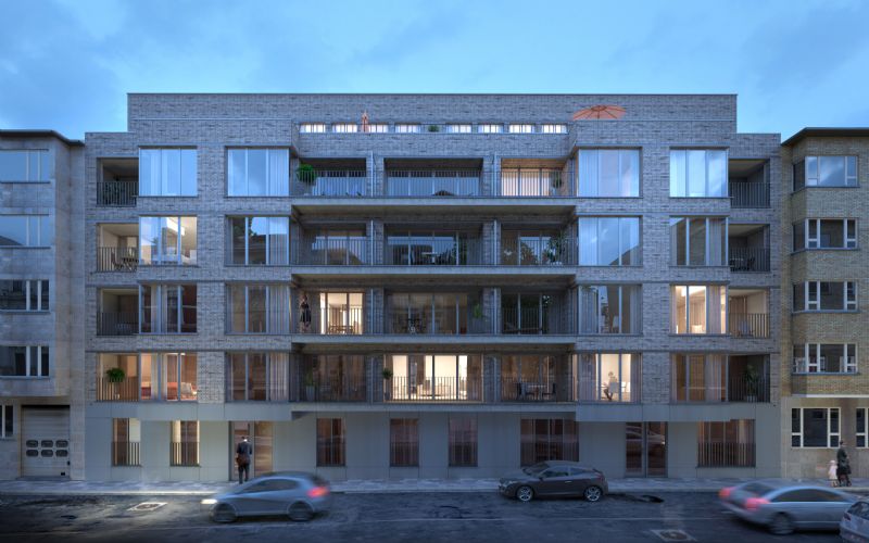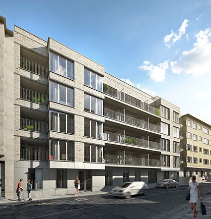 La conception du projet couvre le développement d’appartements. Le projet doit s’intégrer dans une rue principalement composée de maisons de maître et appartements. Le volume se compose de 5 niveaux de construction + 1 toit en retrait conformément à l’immeuble de bureaux à démolir et aux immeubles à appartements voisins.