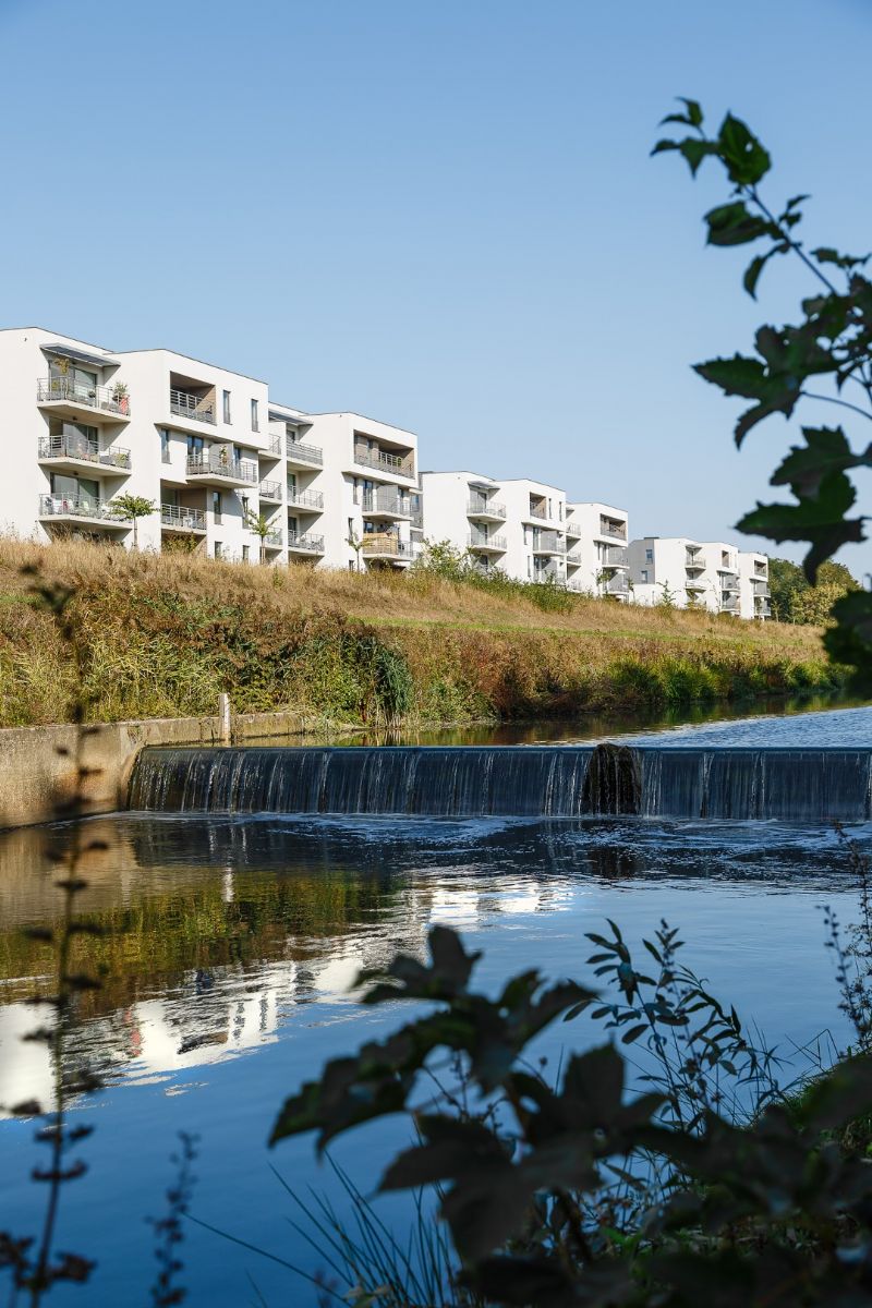 Le projet 'Au Fil des Grand Prés' se compose de 8 immeubles, pour un total de 266 appartements, situés le long de la Haine. Il fait partie d’un projet d’ensemble visant a` prolonger le centre-ville a` l’extérieur des murailles en urbanisant une zone jusqu’alors en friche, permettant ainsi de créer un lien entre le centre- ville et la périphérie. Les bâtiments ont été construits par duo. Leurs alignements sont décalés ce qui permet de rompre avec l’effet de longueur de la Rue de la sucrerie.