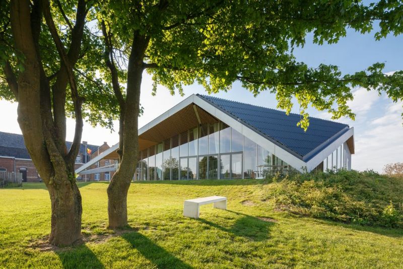 Il fallait que l'ancienne maison communale évolue pour se muer en un nouveau centre de rencontre satisfaisant à des exigences très variées. Ce lieu se devait de répondre aux besoins divers d'un large éventail d'associations nécessitant tantôt une salle de classe ou une salle de réunion, tantôt une cuisine ou un bar. En outre, il fallait que cet ensemble puisse se fondre dans le paysage somptueux qu'offrent les Monts des Flandres.