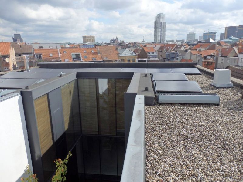Les concepteurs ont supprimé un morceau au centre de la parcelle, laissant deux volumes séparés par une cour intérieure. Chacun de ces volumes a conservé un patio central autour duquel, à chaque étage, deux lofts ont été aménagés. La maison a été divisée en trois appartements. L'un des plus grands défis a été l'ouverture de la parcelle densément construite. Chaque maison a sa propre terrasse, mais c’est l’espace extérieur communautaire autour duquel tourne le projet.