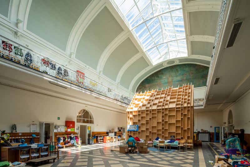 Ecole à l’architecture patrimoniale au coeur de Gand. Une nouvelle verrière vient renforcer le caractère historique. Espace de circulation pour les enseignants et les élèves, le hall central sert également d’espace de jeu et de bricolage. L’ancienne fenêtre de toit a été rénovée aux normes actuelles, avec une verrière qui rajeunit le bâtiment.