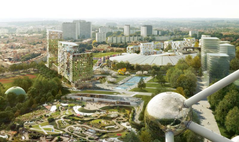 Le parti pris architectural d’Europea consiste à créer un parc résidentiel et des espaces publics sur plus de 3 ha au-dessus de l’ensemble des activités de commerce et de loisirs. La colline habitée est imaginée comme un véritable parc urbain sur lequel s’ouvrent les immeubles de logements et accueille des jardins, des aires de repos, des jeux pour enfants, des animations d’eau. La promenade d’art Europ’Art conjugue paysage et oeuvres d’art à ciel ouvert. L’Esplanade de l’Atomium est un espace spectaculaire où les cascades d’eau répondent aux larges pelouses et offre une nouvelle perspective sur l’Atomium et le plateau du Heysel.