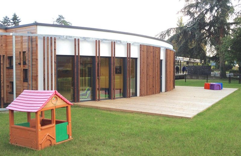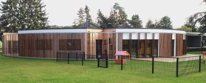 AW Architectes a livré en 2014 une extention-rénovation d'une crèche à Tihange. Le Maître de l’Ouvrage (la SPI) souhaitait agrandir les dortoirs et les espaces de jeu pour augmenter la capacité de la crèche de 25 à 48 places. L'architecte a pris l’option d’emballer le bâtiment existant et de créer une nouvelle esthétique, une peau en forme d’« œuf » autour du bâtiment. En plus de symboliser la fonction (protection, vie, parc d’enfants en rondins, …), le bardage entourant l’ensemble unifie le tout et donne une image forte au bâtiment.