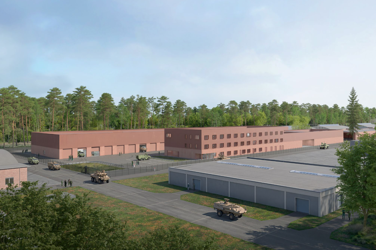 La Défense a confié au consortium Cordeel Belgium – CIT Blaton – Archipelago architects, accompagné de Ney & Partners, Ingenium, Imtech Belgium et C-Maintenance, la réalisation des nouvelles infrastructures pour la capacité motorisée (CaMo) à Leopoldsburg.