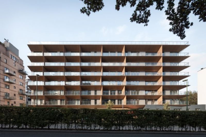 A Woluwé Saint-Lambert, le projet 'Les Balcons' s’inscrit dans le processus de réaffectation d’immeubles inoccupés, en vue de répondre aux besoins croissants en logements et au développement raisonné du tissu urbain à Bruxelles. Le bâtiment d’origine fait partie d’un complexe de 4 immeubles de bureaux, dont trois ont déjà fait l’objet d’une réaffectation en logements. Le projet de transformation intègre principalement une fonction résidentielle en déployant 85 logements répartis sur un total de 8 niveaux pour le bâtiment principal et 6 niveaux pour le nouveau bâtiment. Le maître d'ouvrage; le promoteur bege Oryx Projects, en a confié la conception au bureau d'architecture bruxellois A2M. Le bâtiment repond au standard passif et a été primé comme bâtiment exemplaire par Bruxelles Environnement.