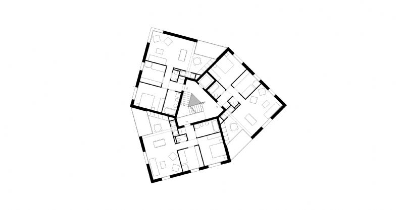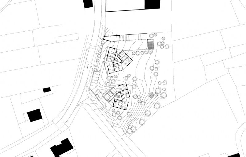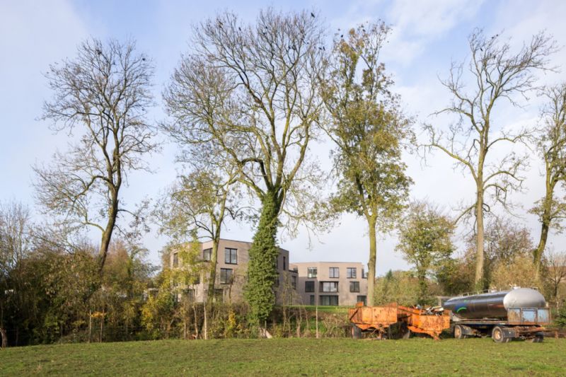 Le projet consiste en une proposition d’inscription paysagère de deux volumes (14 appartements au total) qui, par leur articulation, engendrent des séquences visuelles ouvertes et dynamiques sur l’environnement. L’implantation génère des dégagements libres sur la campagne, les bâtiments de l’ancienne ferme et la tour classée. Le jeu volumétrique minimise l’impact visuel des façades, ainsi que l’emprise au sol. Chaque appartement bénéficie au minimum d’une double orientation.