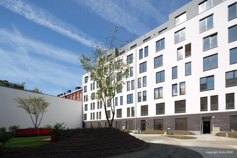Construit sur le site des anciens établissements Ducuroir à Forest, ce projet comprend la construction de 64 logements neufs dans un ilôt arboré et paysagé. La moitié des logements est construite selon les principes du standard «passif» et l’autre moitié, pour des raisons de faisabilité technique, sur le standard «très basse énergie».
