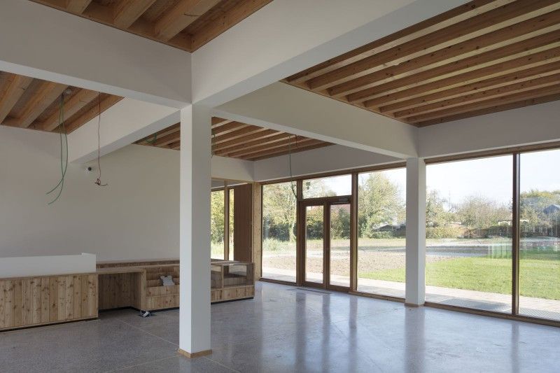 Le musée s’inscrit directement dans la prolongation en plan du bâtiment en sheds. Cette relation existe également en volume. La profondeur et la hauteur du musée sont proportionnées directement en rapport avec ce bâtiment mais aussi, par prolongation, avec tout le patrimoine industriel mouscronnois. La mise à l’horizontale du musée a permis de placer tous les espaces adressés au public au rez-de-chaussée, en connexion visuelle et physique avec le parc. Au-delà de cette prise position architecturale le projet a également été accompagné de la proposition d’intégrer le travail d’un artiste, Simon Boudvin.