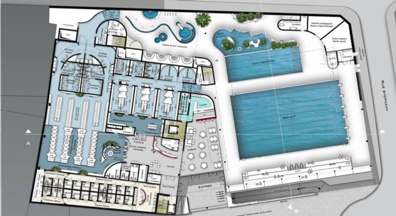 Dans le cadre d'un projet plus large de rénovation de ses piscines publiques, la ville de Liège a décidé la construction d'une piscine publique, accompagnée d'un espace de bains publics, sur le site d'une ancienne usine, devenu mi-parking mi-chancre urbain, à deux pas du centre ville et de la gare de Liège-Carré. L'ouverture est prévue en janvier 2020.