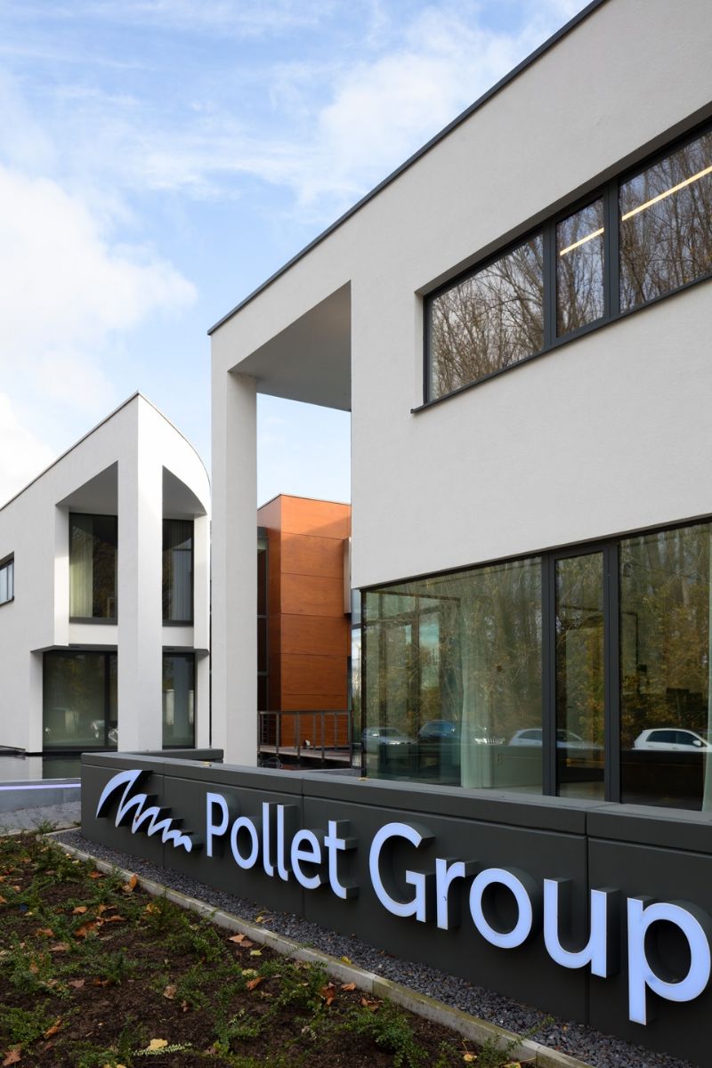Pollet Group, spécialisé notamment dans le traitement de l’eau et actif mondialement, a investi à Waregem dans un nouveau siège avec bureaux et salles de réunion. L’atelier d’architecture Maes & De Busschere a conçu ce bâtiment avec l’architecte d’intérieur Stephanie Laporte. Le résultat final un bâtiment plein de style avec des accents boisés tant à l’extérieur qu’à intérieur.